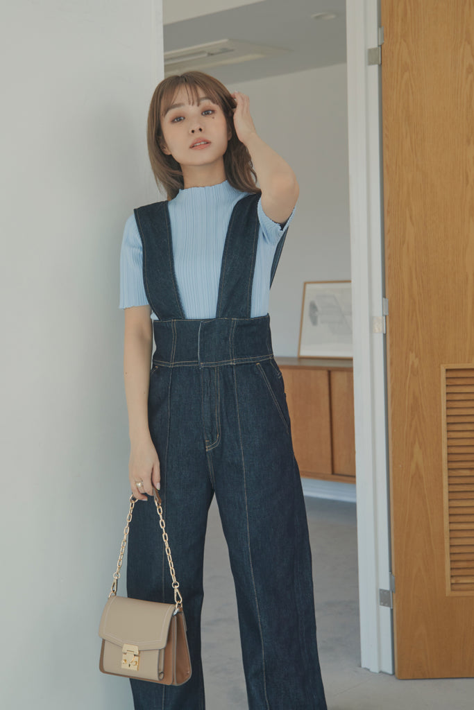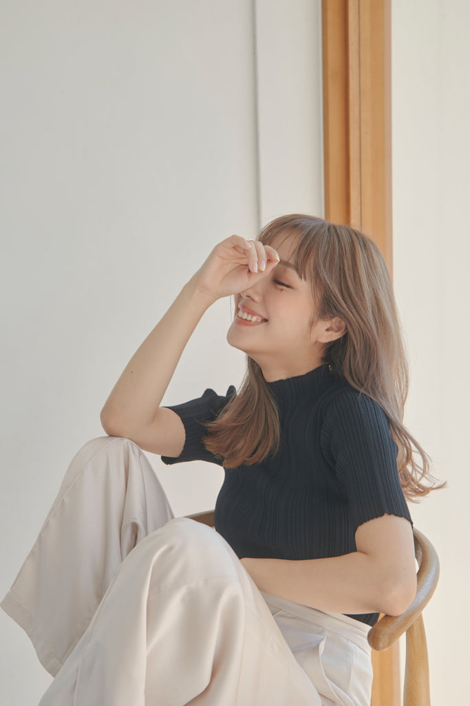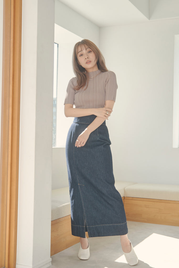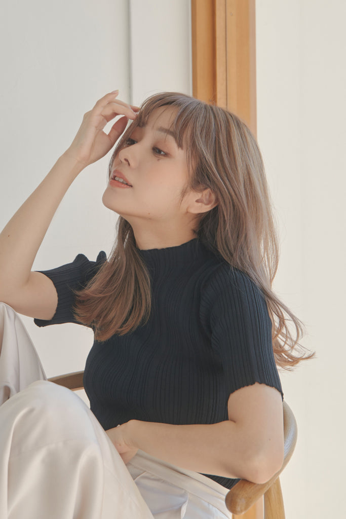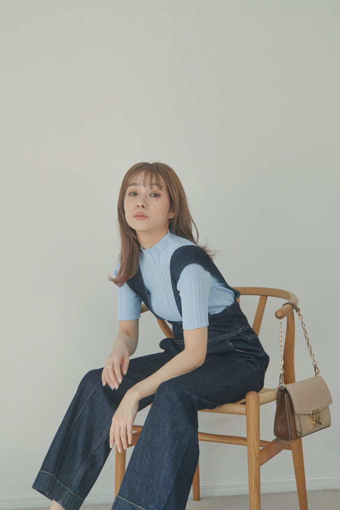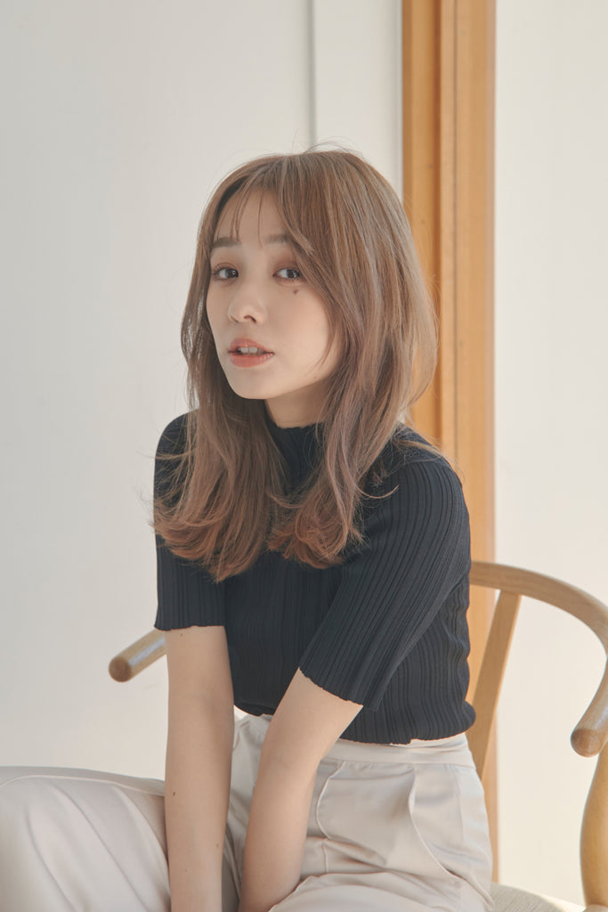 バックのボタンがポイントのベーシックなニットTOPSです!5分袖で夏手前まで長い間ご着用いただけます。デニム合わせのシンプルなコーディネートでもお洒落に決まるアイテムです!