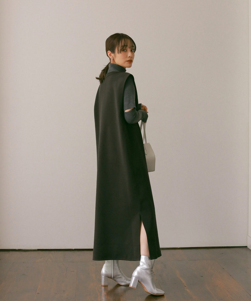 トレンドのスキッパーワンピース。全体的にゆるっとしたシルエットでリラックスーモードに。ロング丈ですがサイドにスリットが入っているので、重たくなりすぎず程よい抜け感が。肉厚な素材を使用しているので、下着のラインが響きにくいのが嬉しいポイントです。シャツやレーストップス等と合わせてレイヤードを楽しんでいただけます。同じ素材でショート丈のご用意もございます。