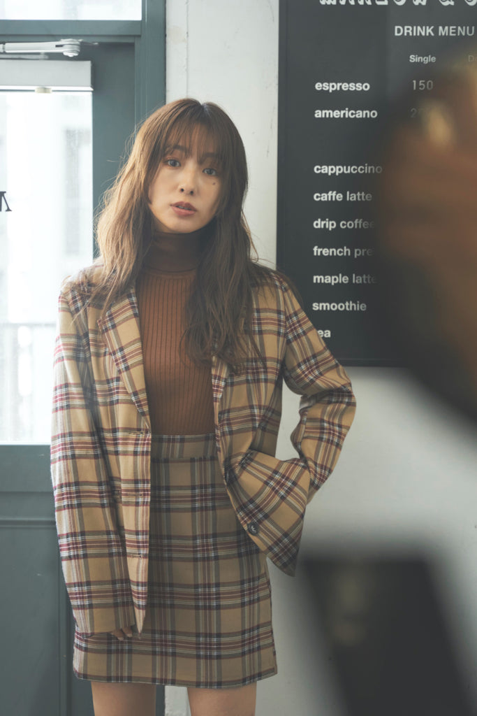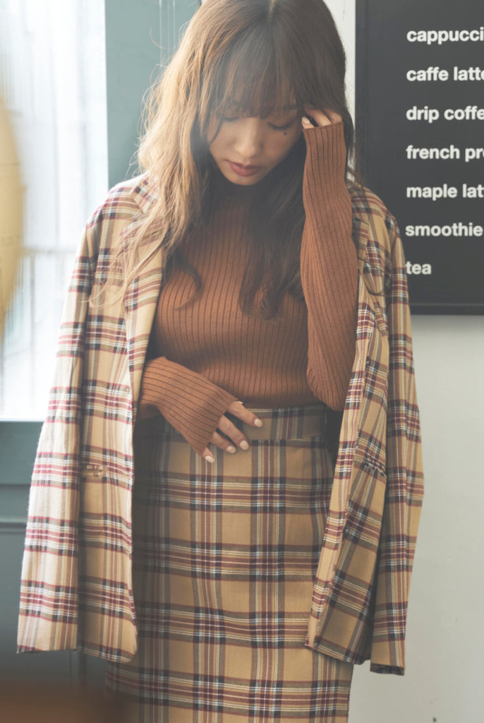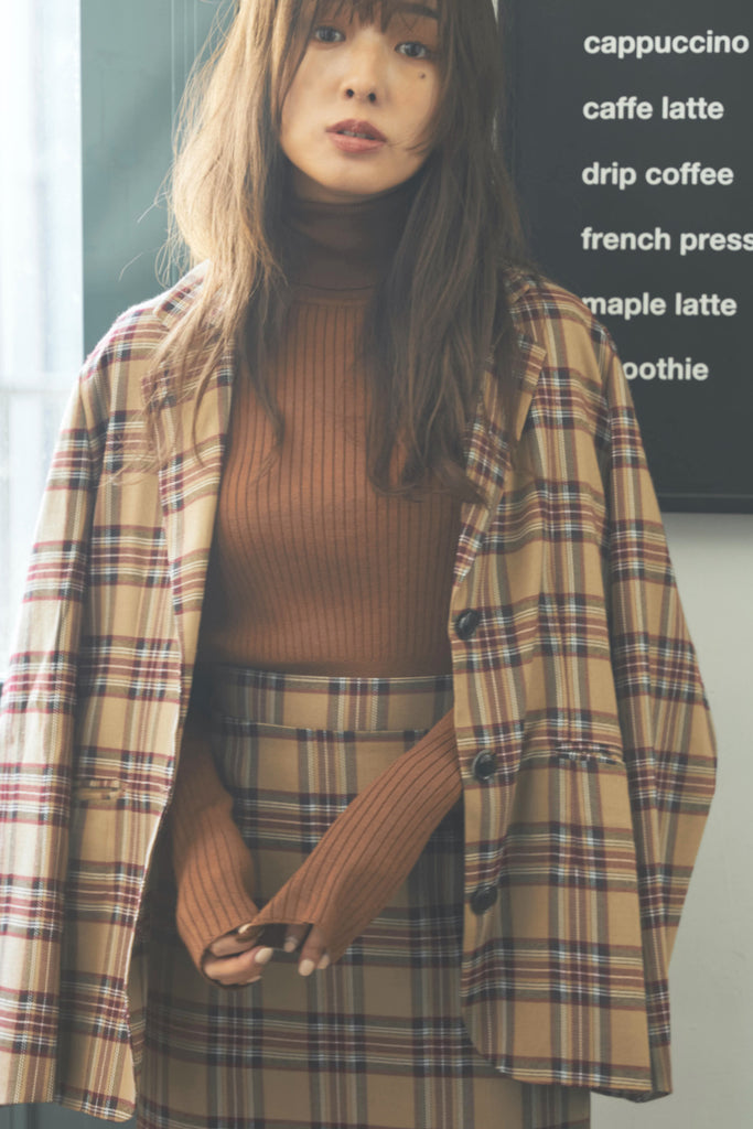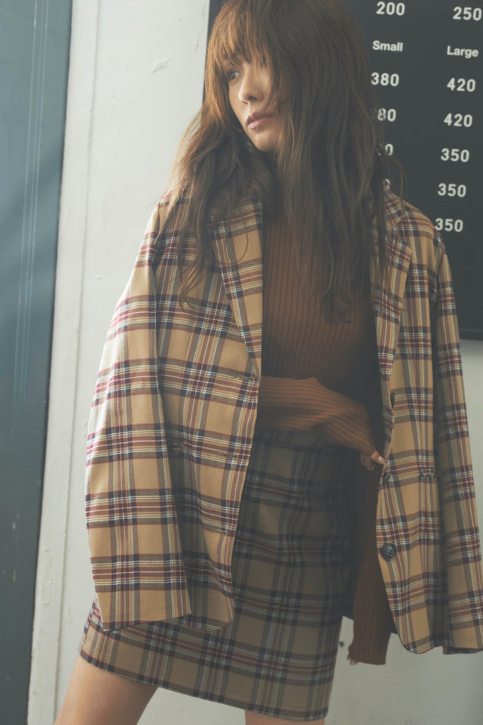 ゆったりめのジャケットと、タイトなスカートで合わせた女性らしいセットアップコーディネート。ジャケットとスカートで別々でも着回しすることが可能なので着回し抜群です。