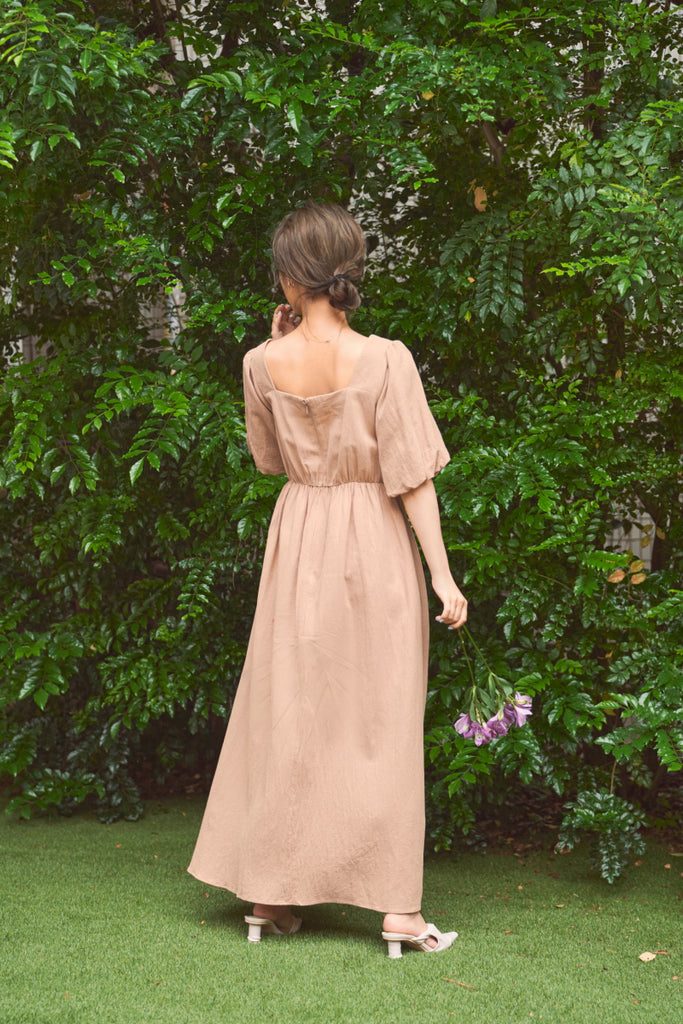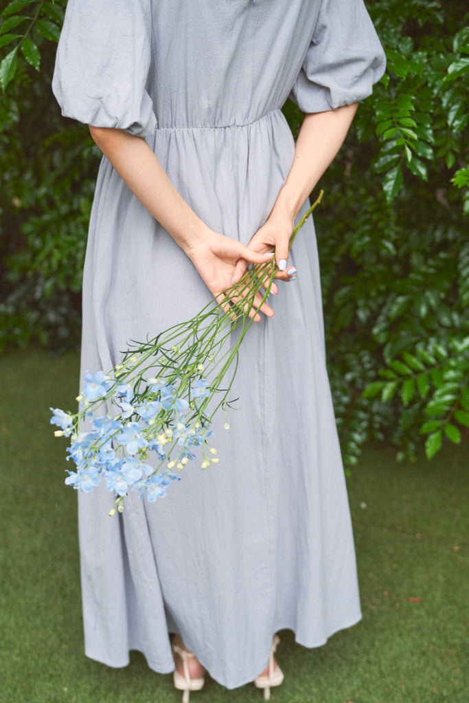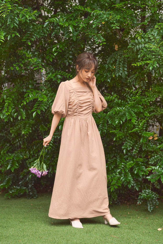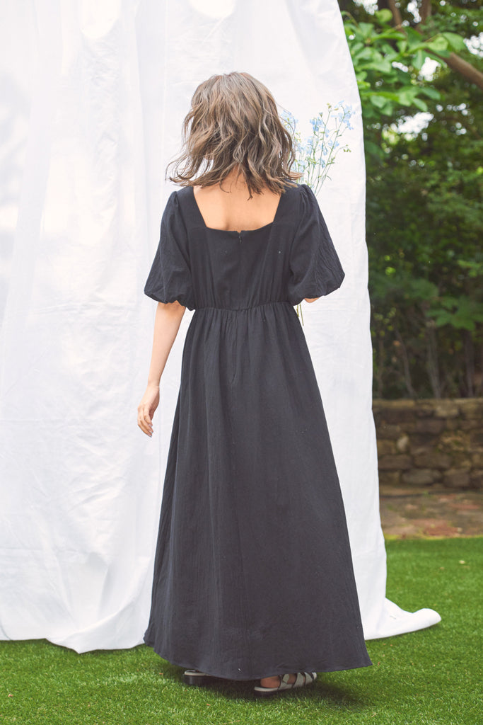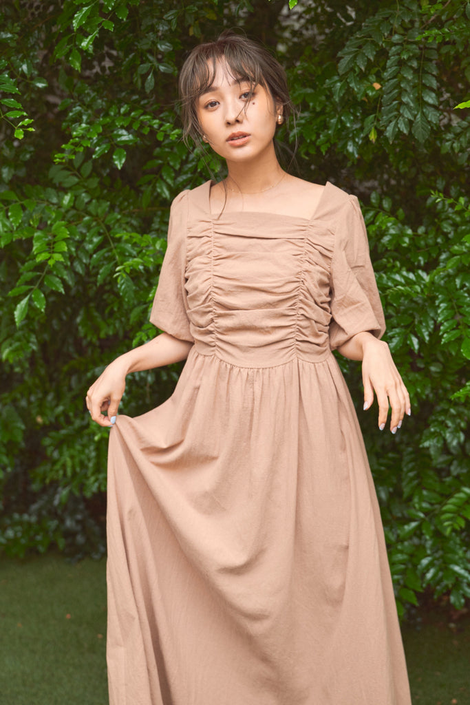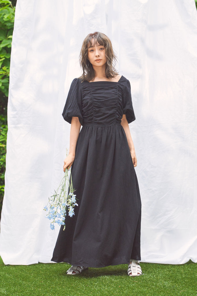 パフスリーブのデザインが可愛いワンピースです!スクエアネックでデコルテラインを綺麗に見せてくれ、ウエストの位置を高めに設定することでスタイルアップ効果があります。ゆったり目なサイズ感でラフにご着用いただけます。