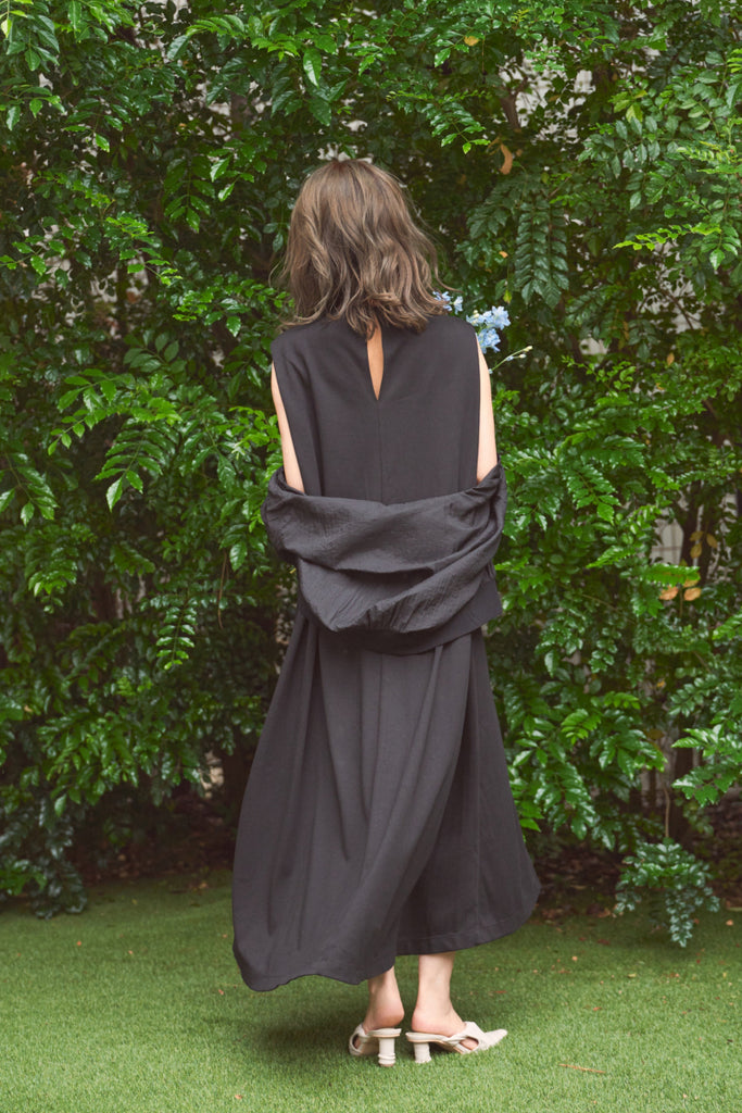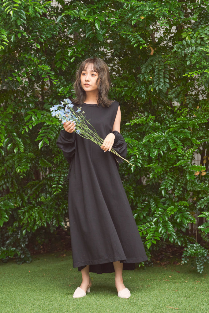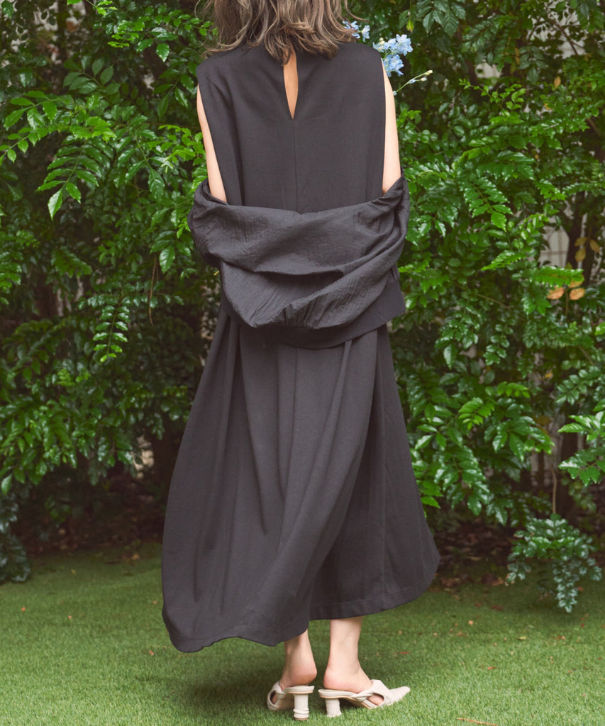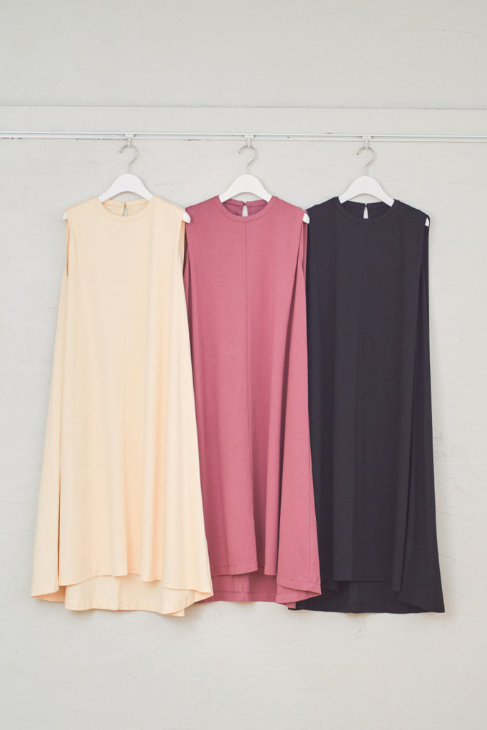 すっきりとしたAラインの着心地抜群なワンピースです!厚すぎず薄すぎない素材感にもこだわり、肩部分のタックのデザインがポイントで、暑い時期にもサラッとご着用いただけるアイテムです。