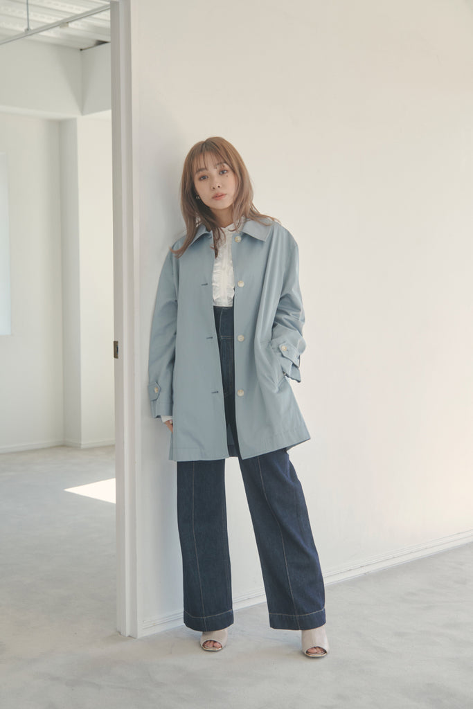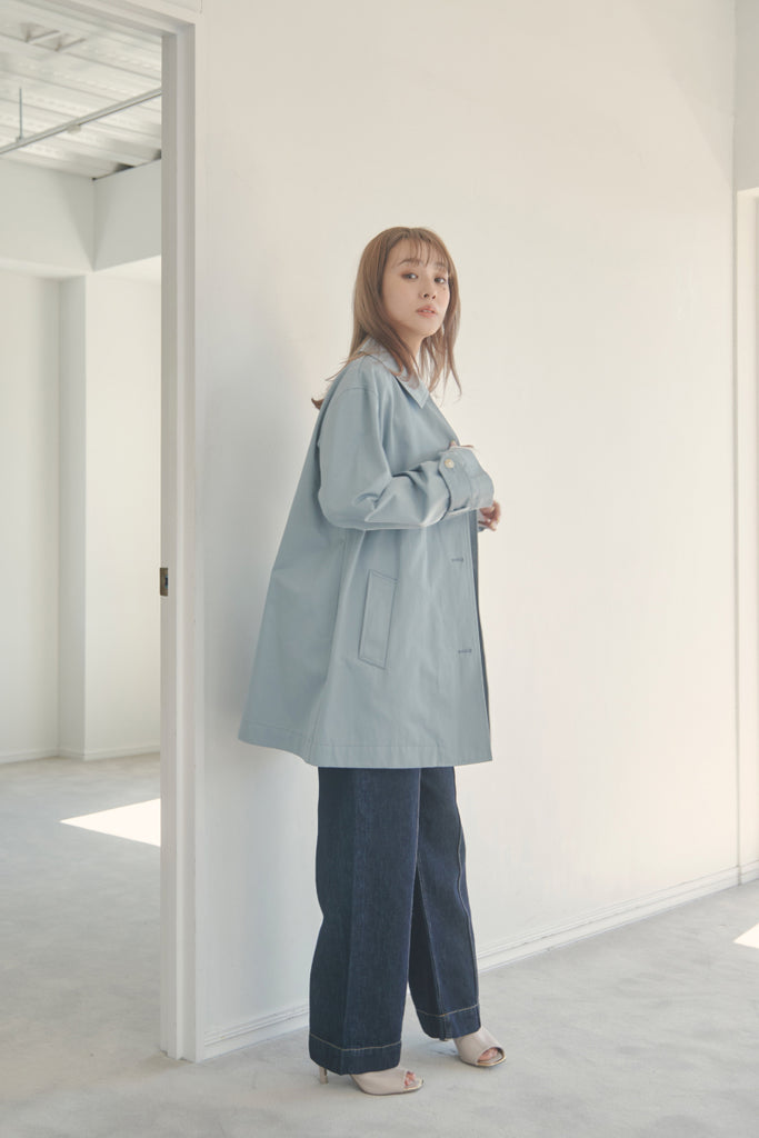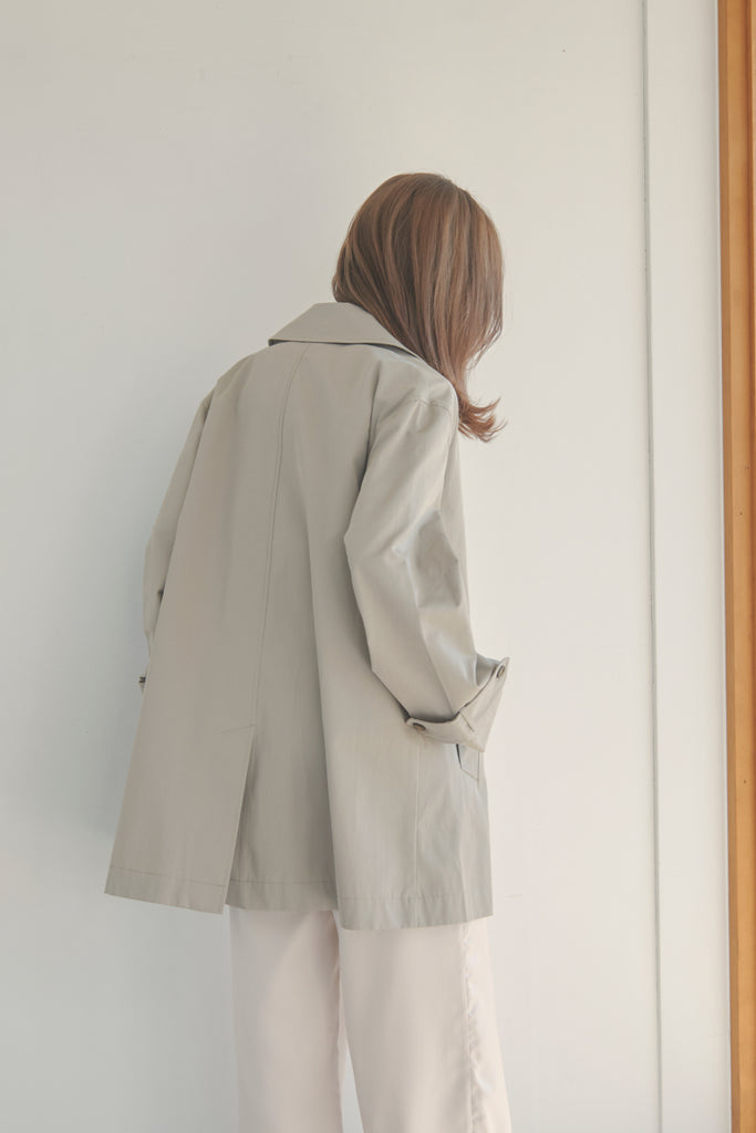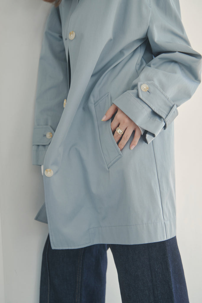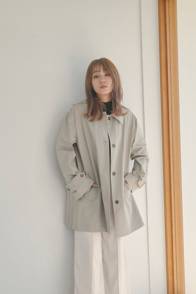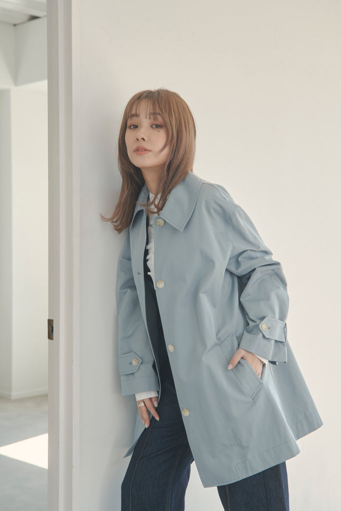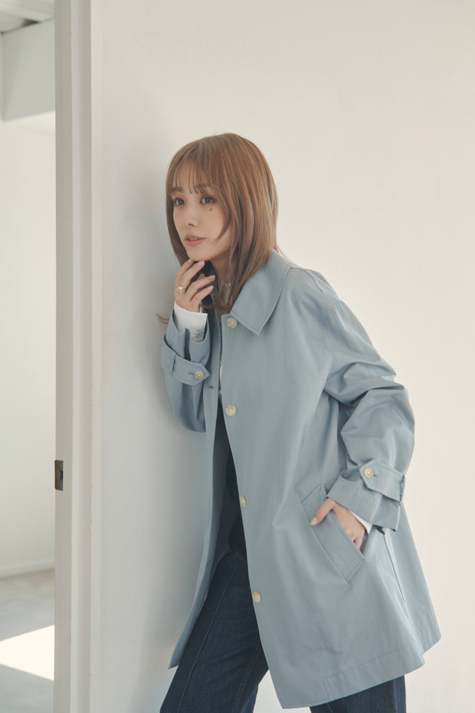 ロングステンカラーコートのショート丈バージョンです。 どんなボトムを合わせても足が長く華奢に見える丈感に設定し、 ボタンを開けても閉めてもお洒落に見えるようこだわりました。