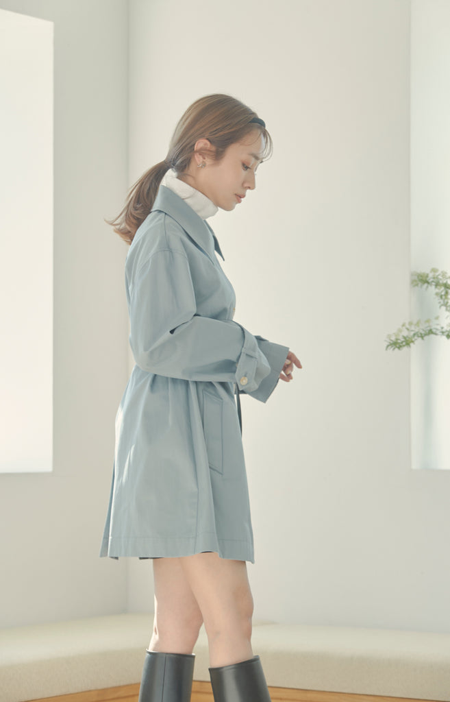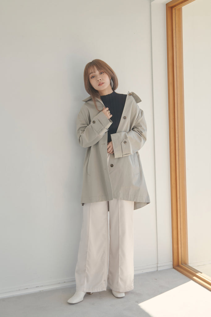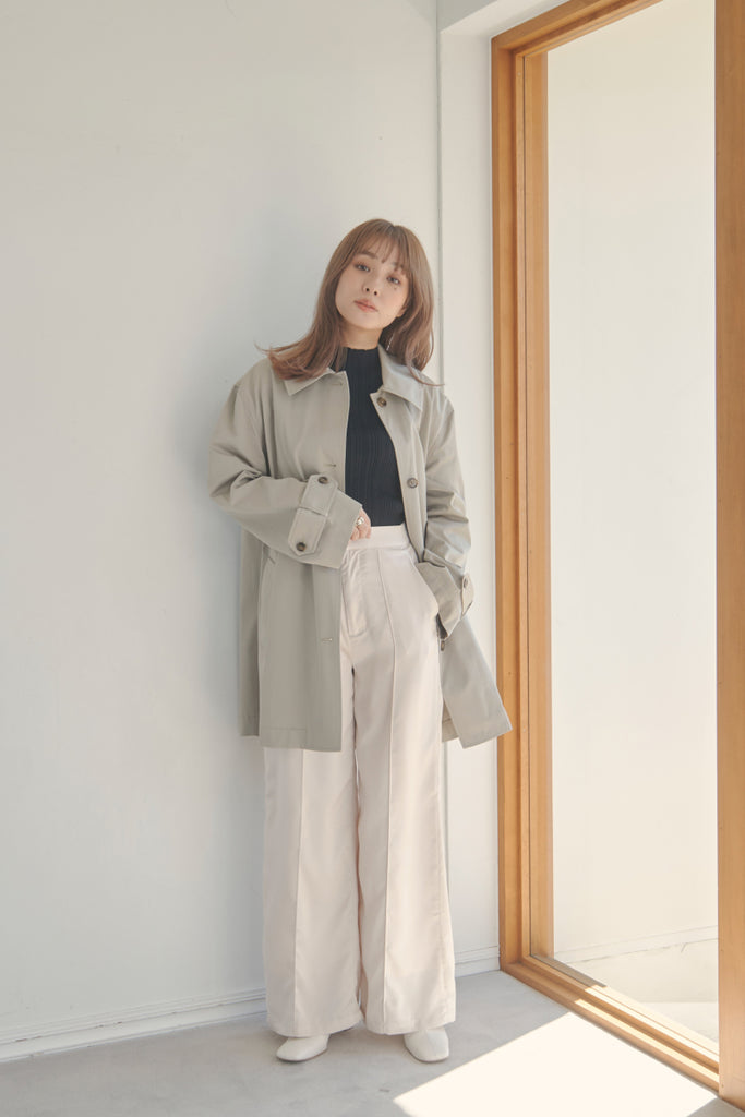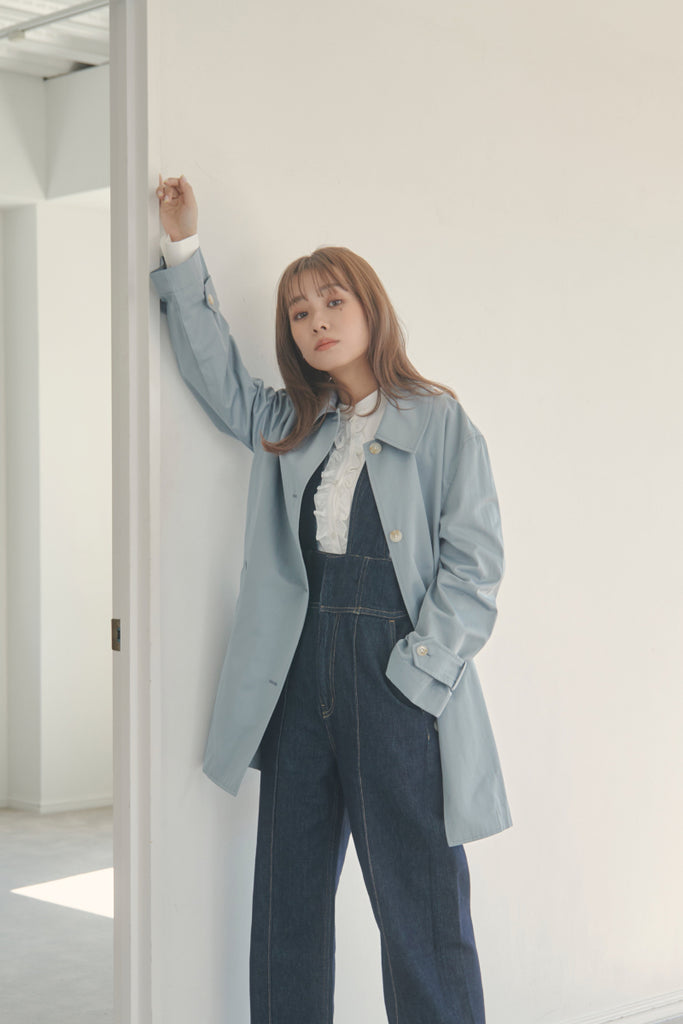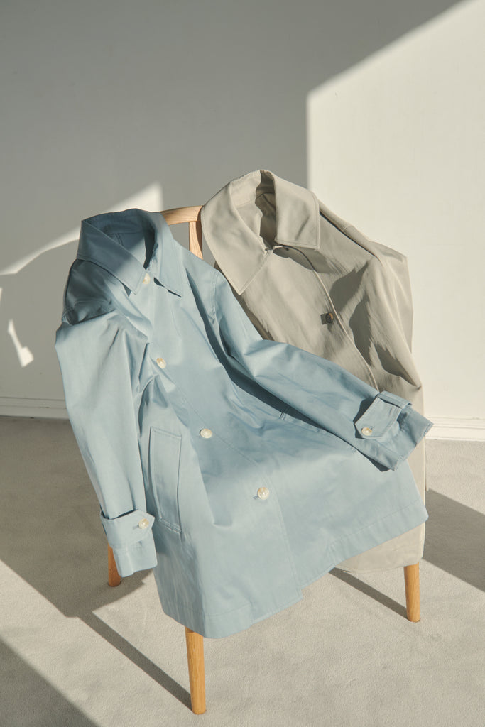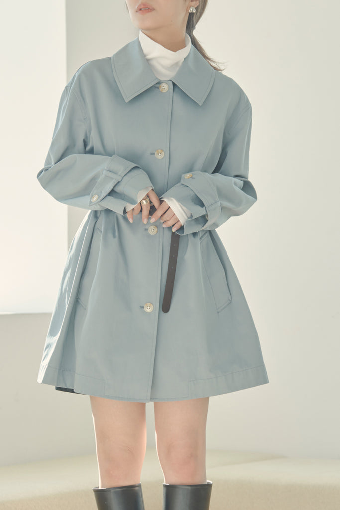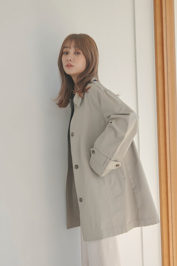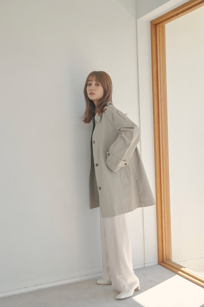 ロングステンカラーコートのショート丈バージョンです。 どんなボトムを合わせても足が長く華奢に見える丈感に設定し、 ボタンを開けても閉めてもお洒落に見えるようこだわりました。