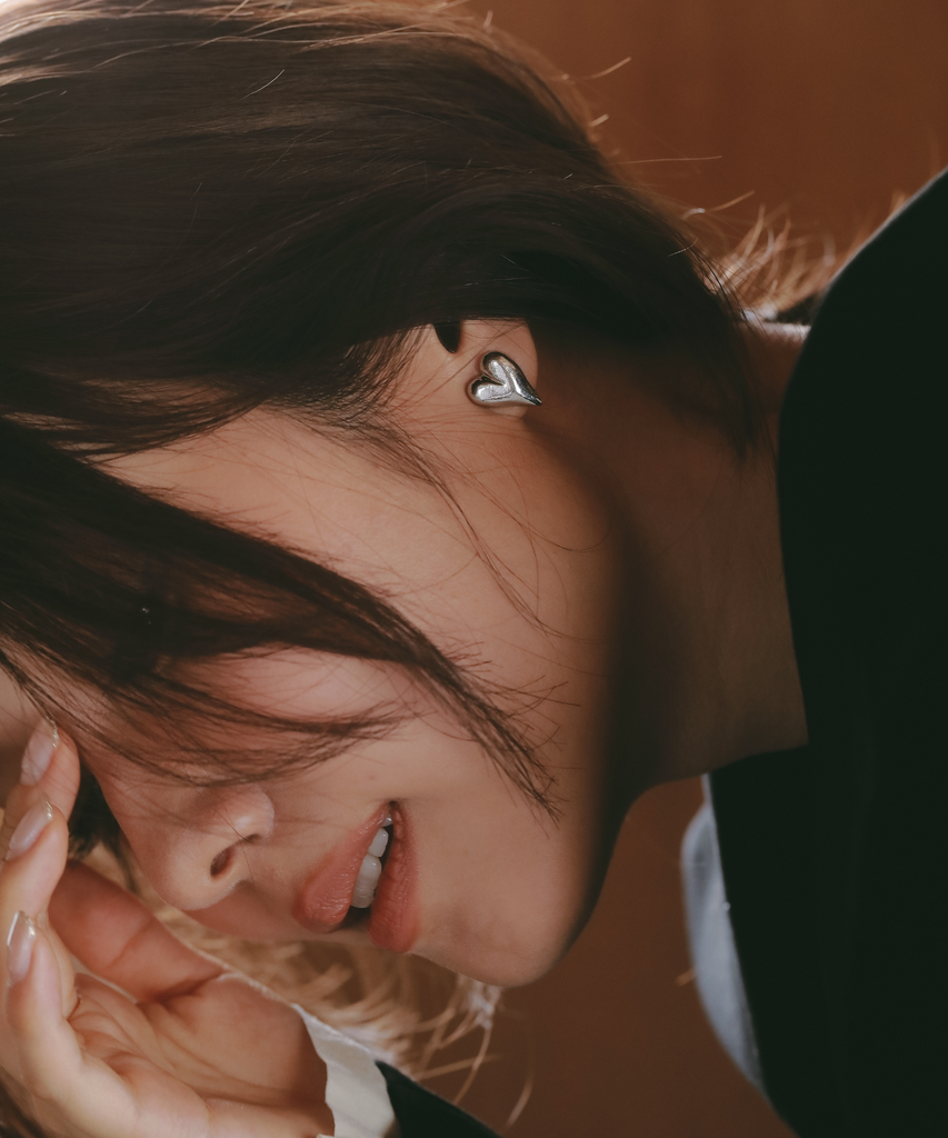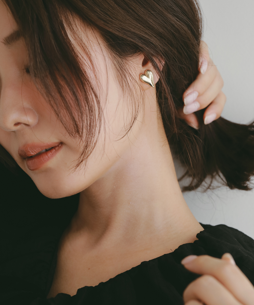 シンプルな中に愛らしさを添えてくれる、ハートモチーフのイヤリング。