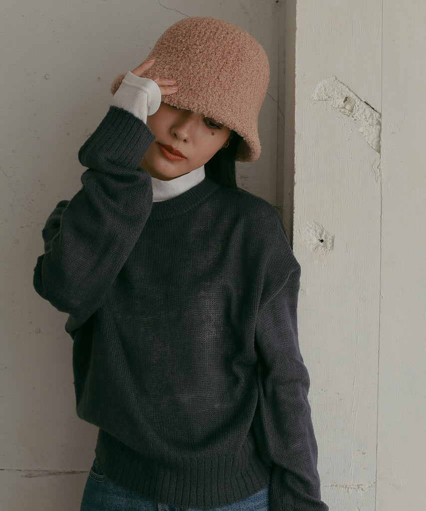 大人気のハットシリーズ。モコモコとした表面感が、コーディネートのポイントになります。また頭に心地よくフィットし、より小顔に見せてくれます。