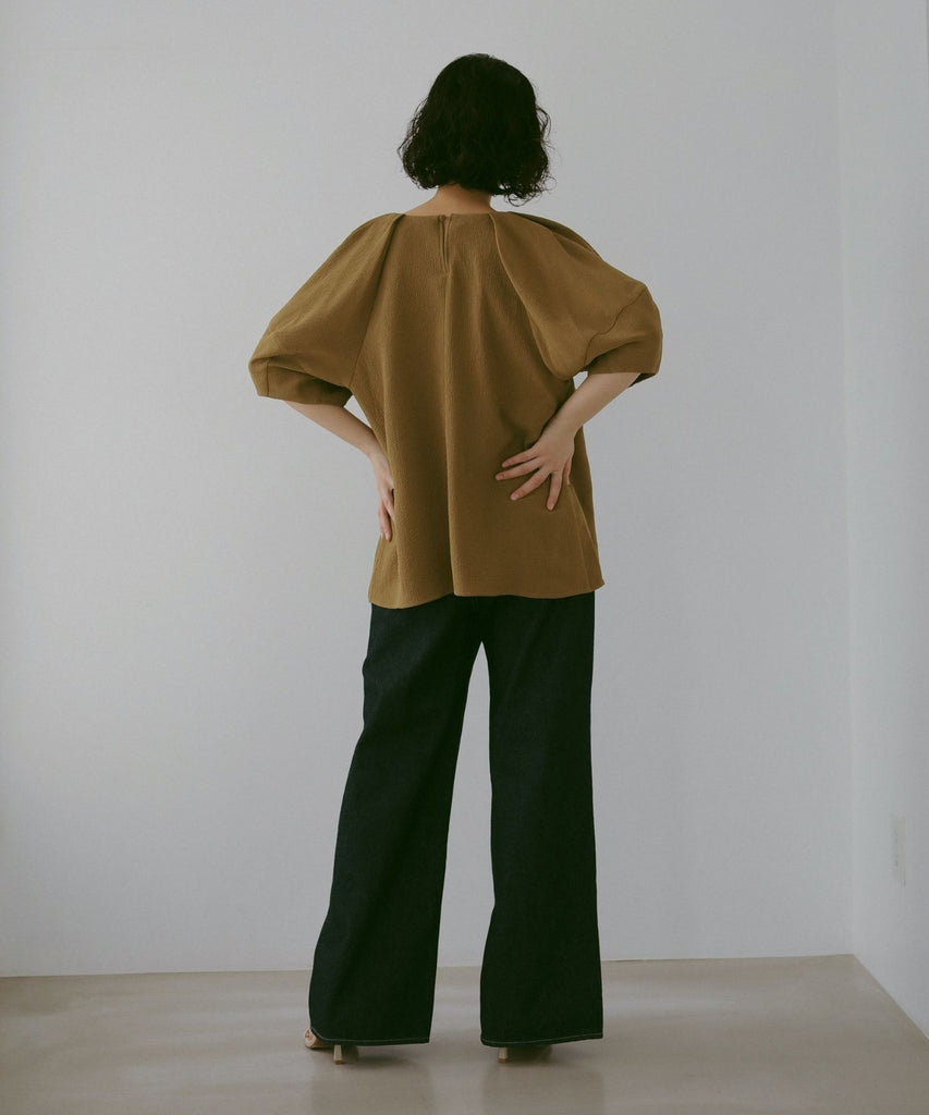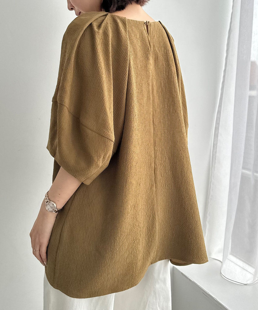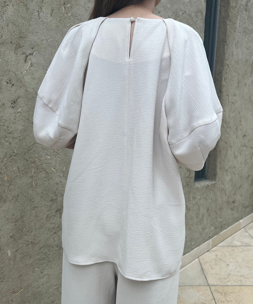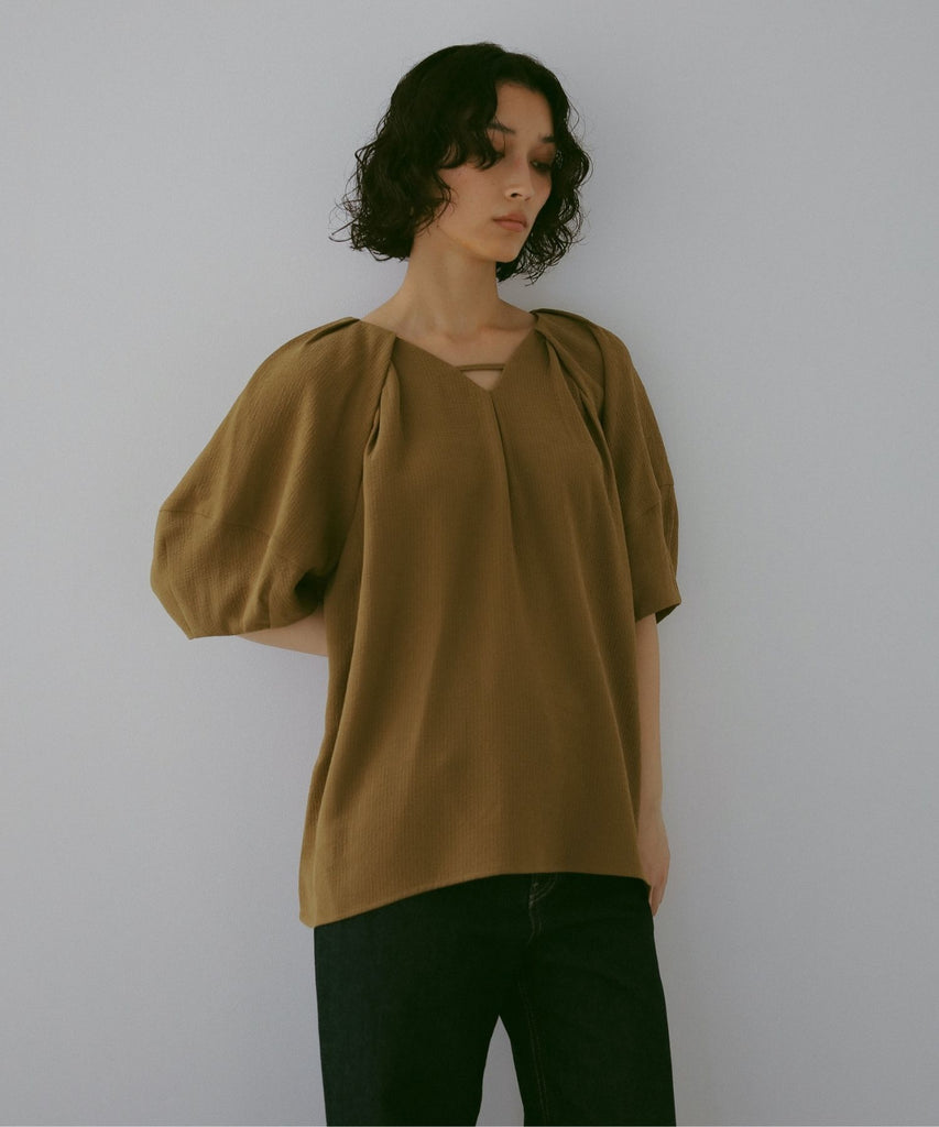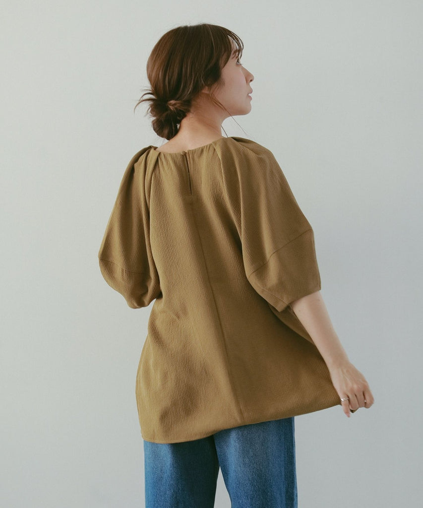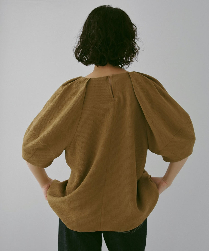 ふっくら丸みのある立体的なシルエットが上品に着映えするランタンスリーブブラウス。