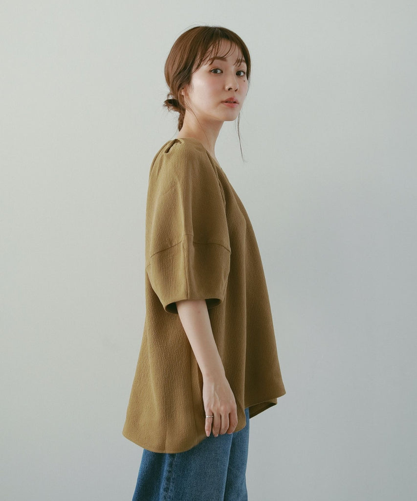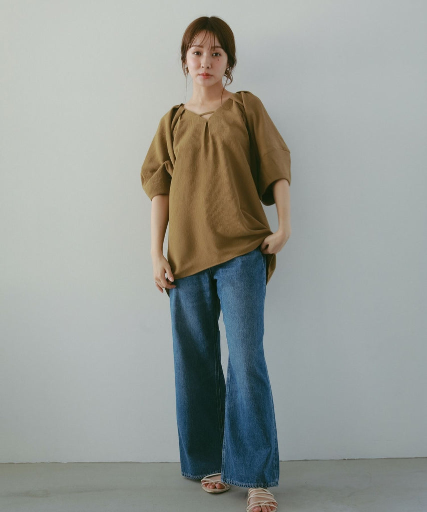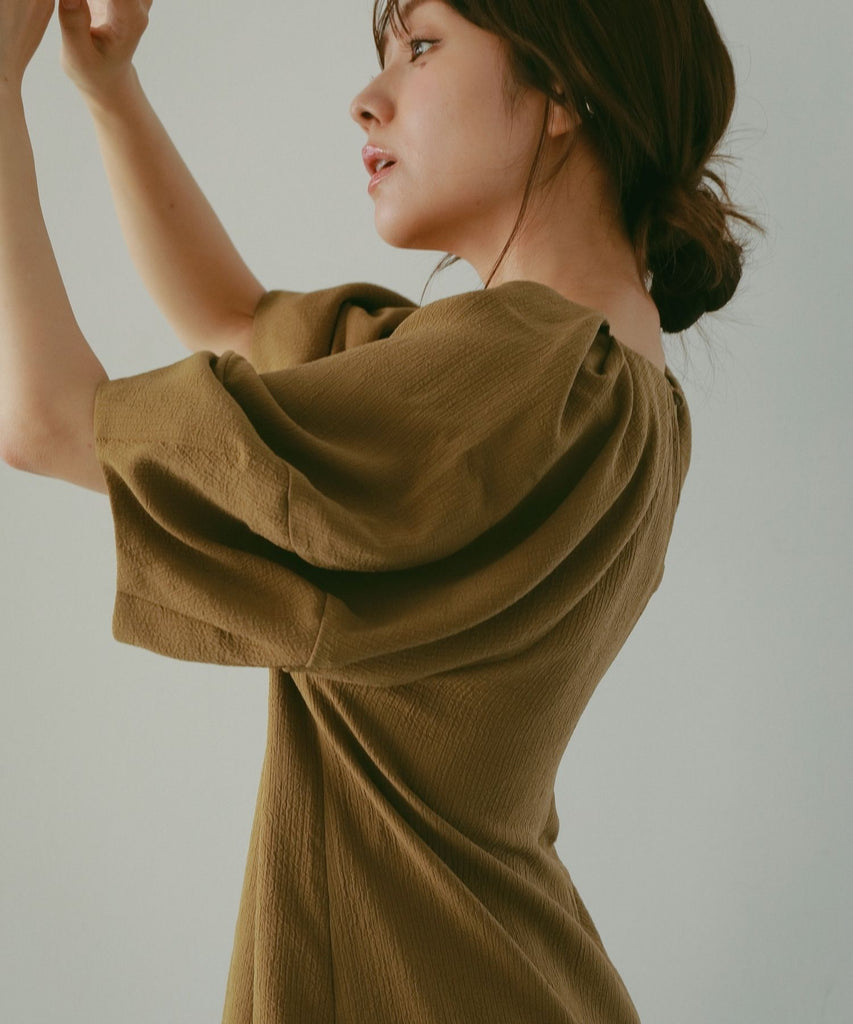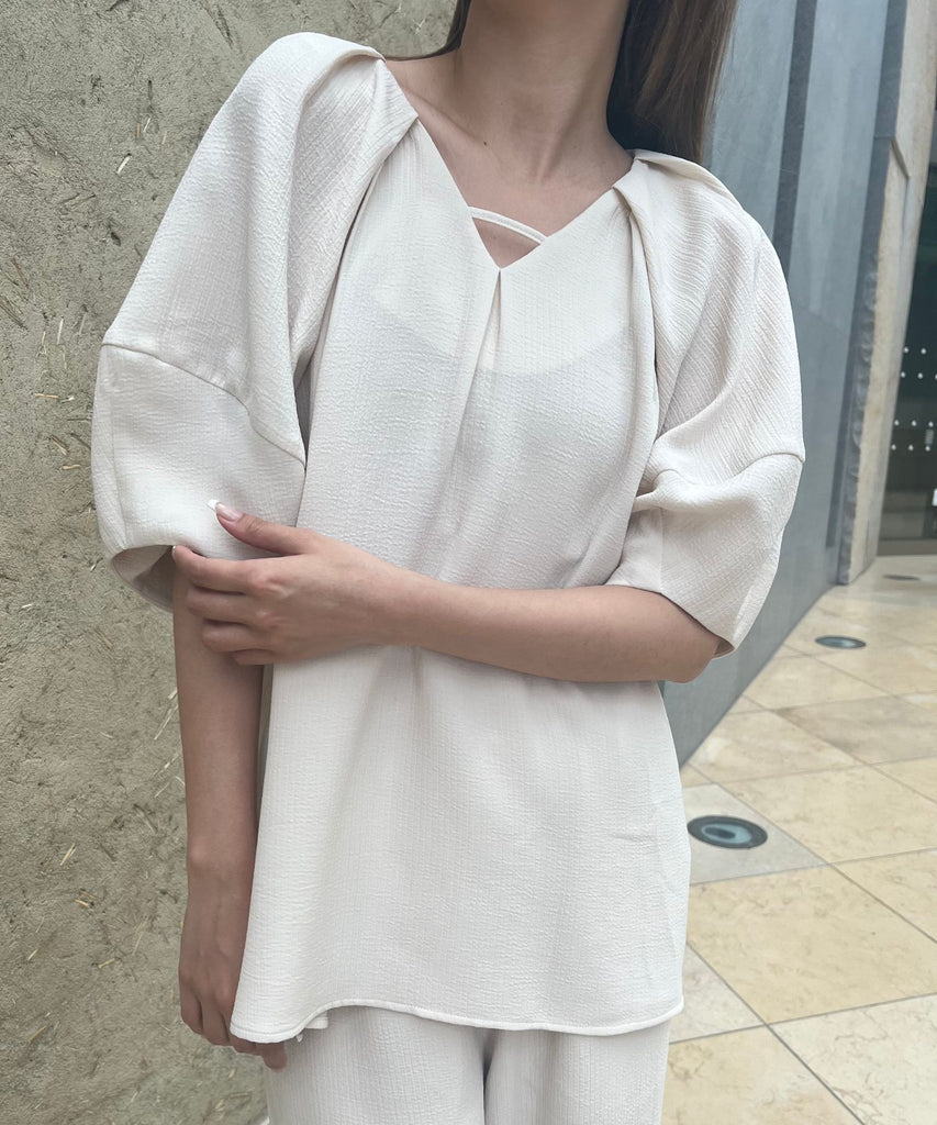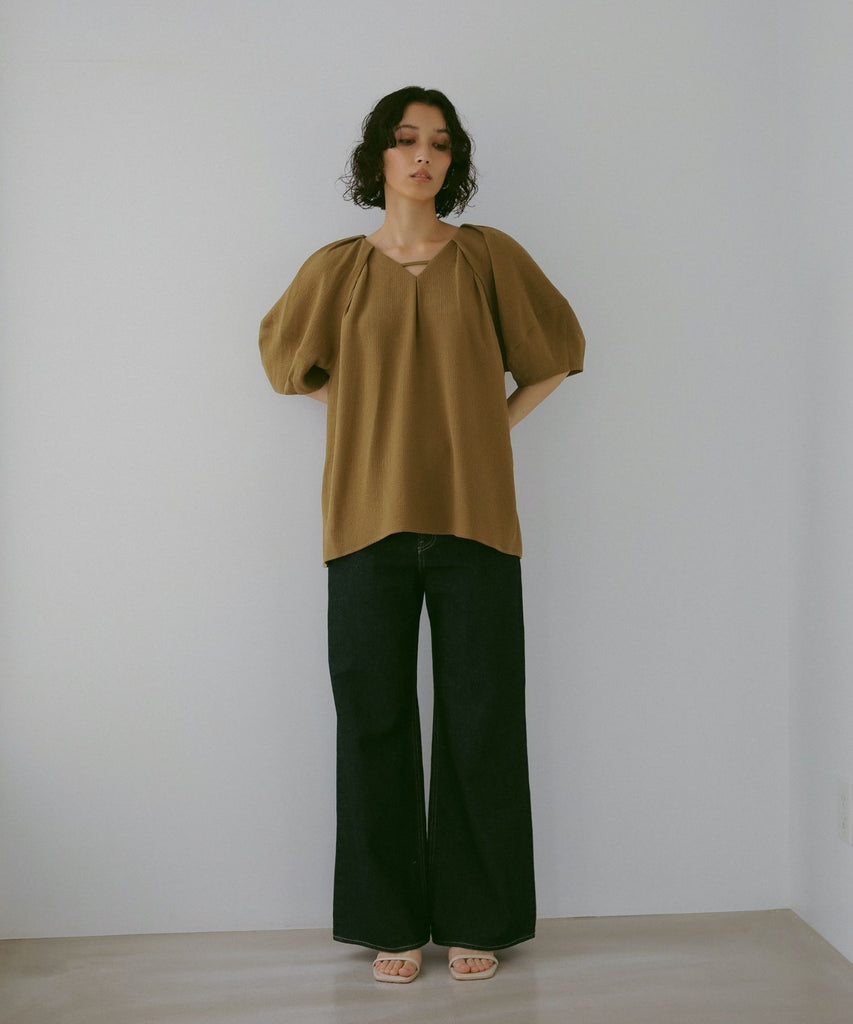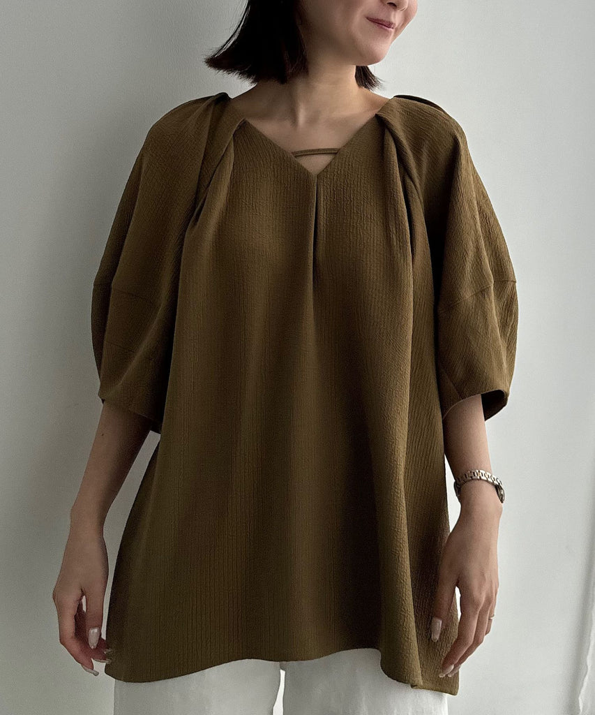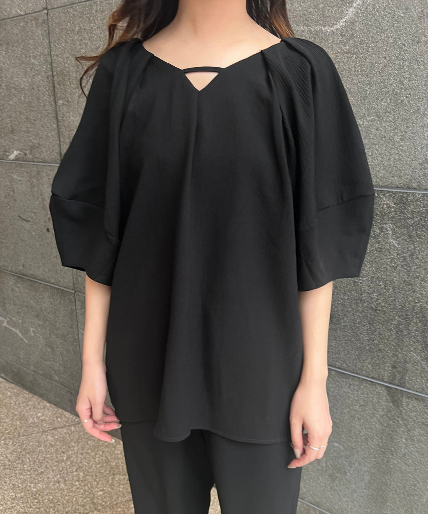 ふっくら丸みのある立体的なシルエットが上品に着映えするランタンスリーブブラウス。