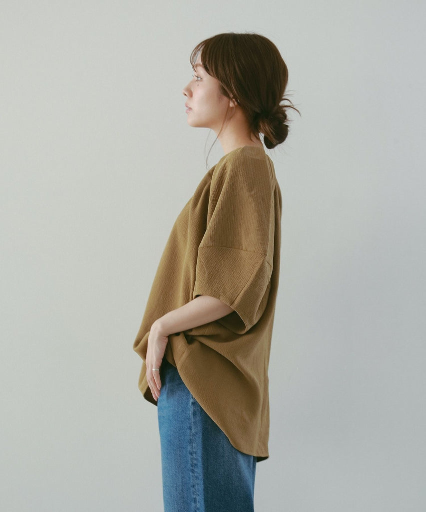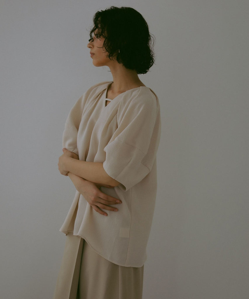 凹凸のある表情豊かなジャガード生地を使用し、程よくナチュラルなニュアンス漂う素材感が特徴です。