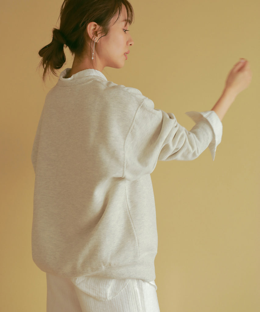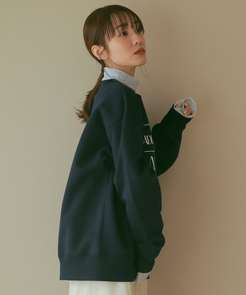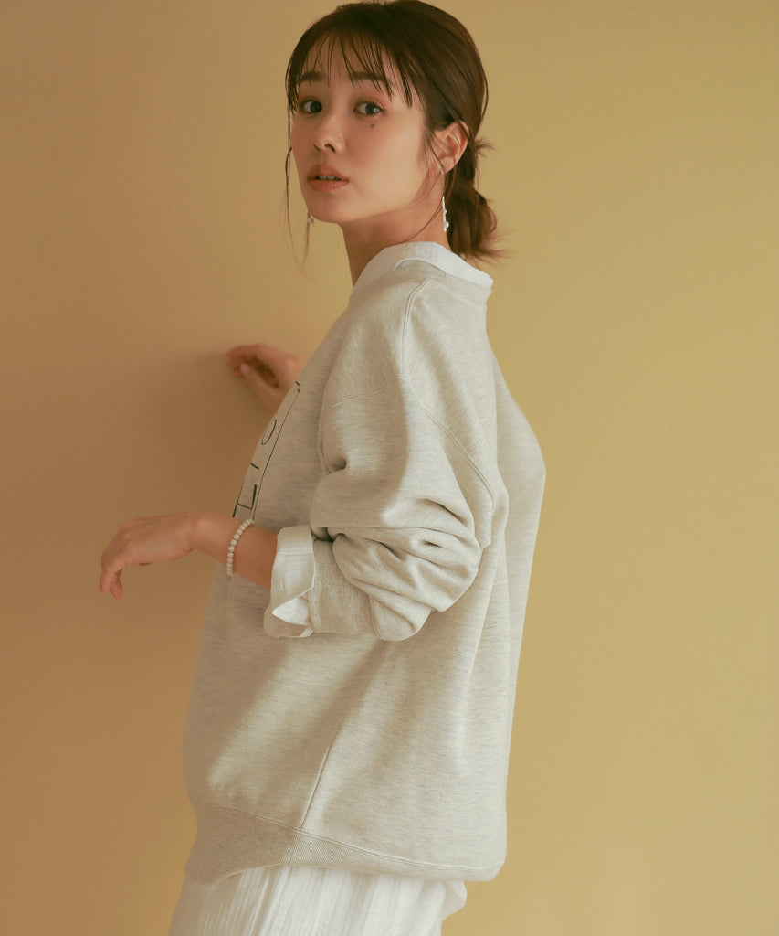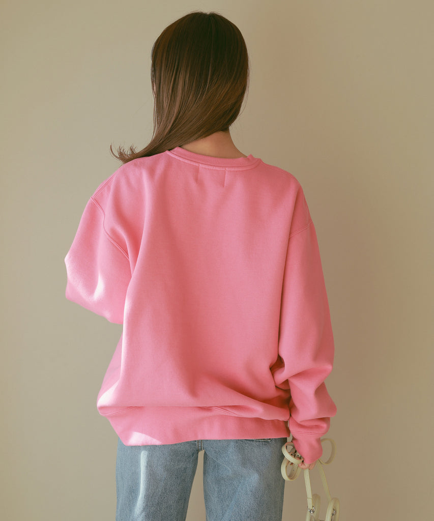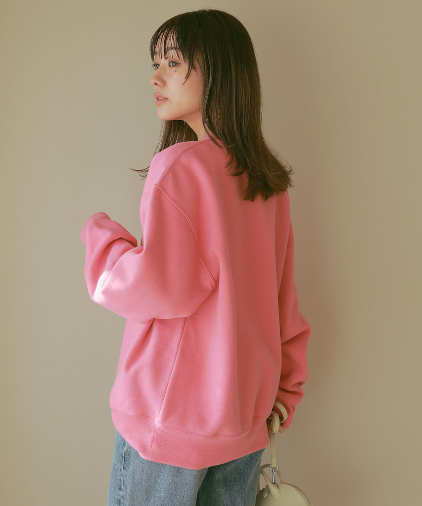 ビックロゴが目を引くスウェット。オーバーサイズでお尻が隠れる嬉しい着丈です。目の細かい素材を使用しているので、着膨れせずスウェット特有のごわっと感や着膨れしにくいのが特徴的です。また保温性の高い裏起毛を使用しており、春先まで長く着用いただけます。ユニセックスなのでメンズの方も着用いただけます。