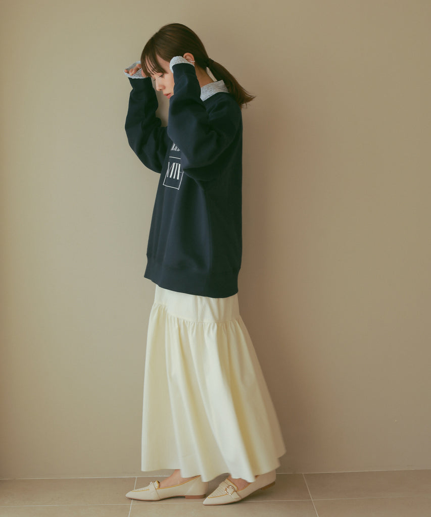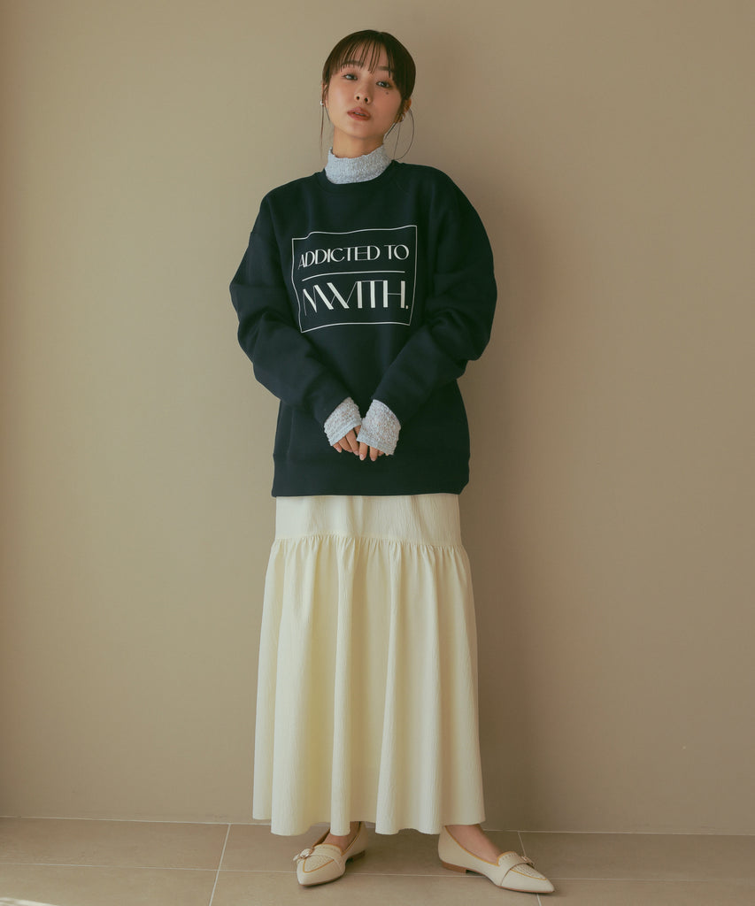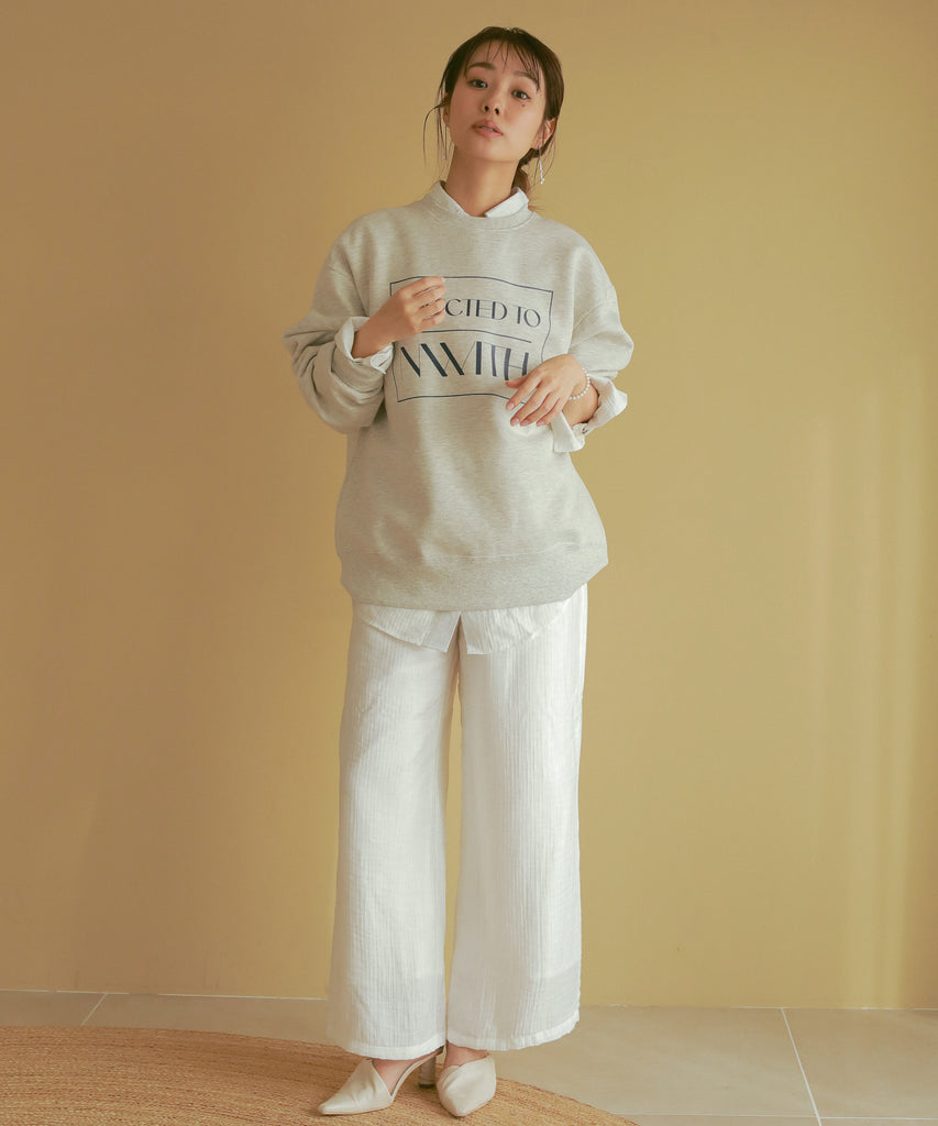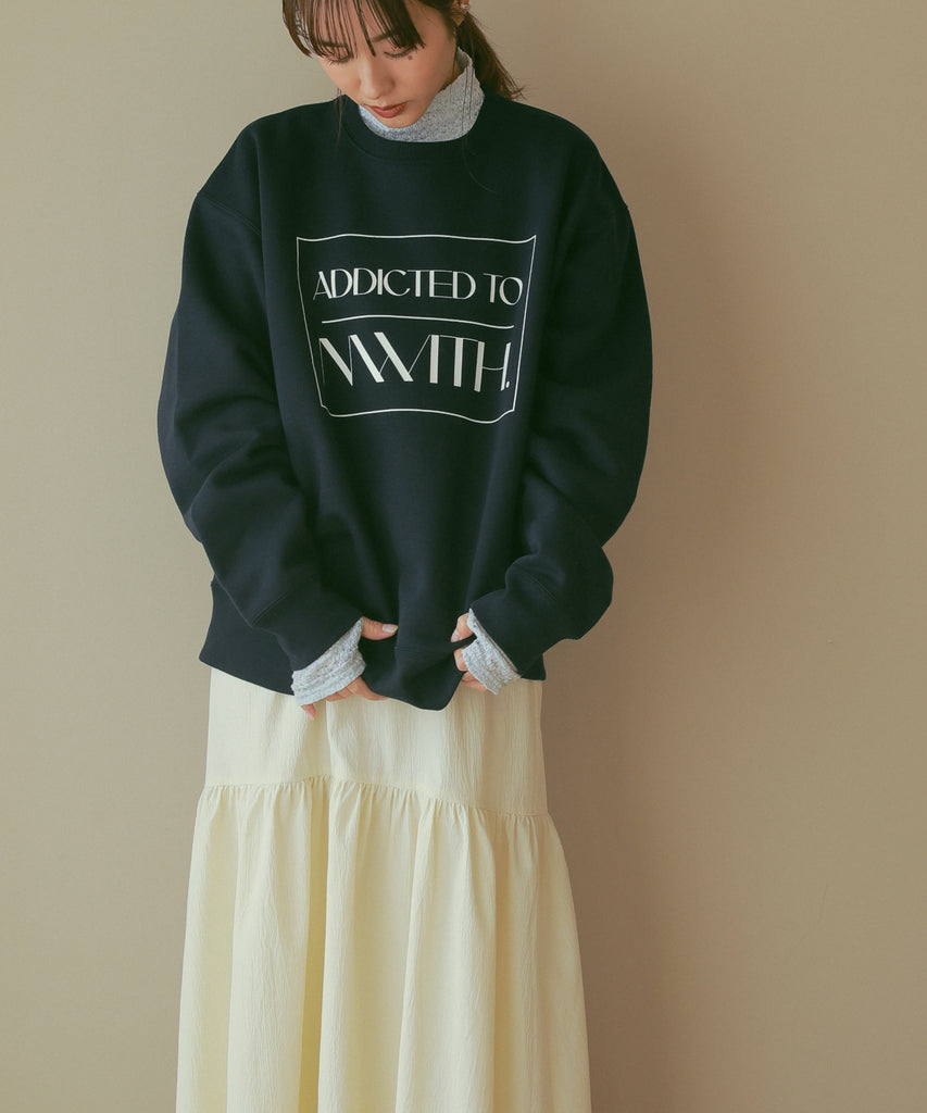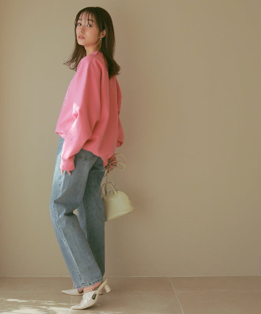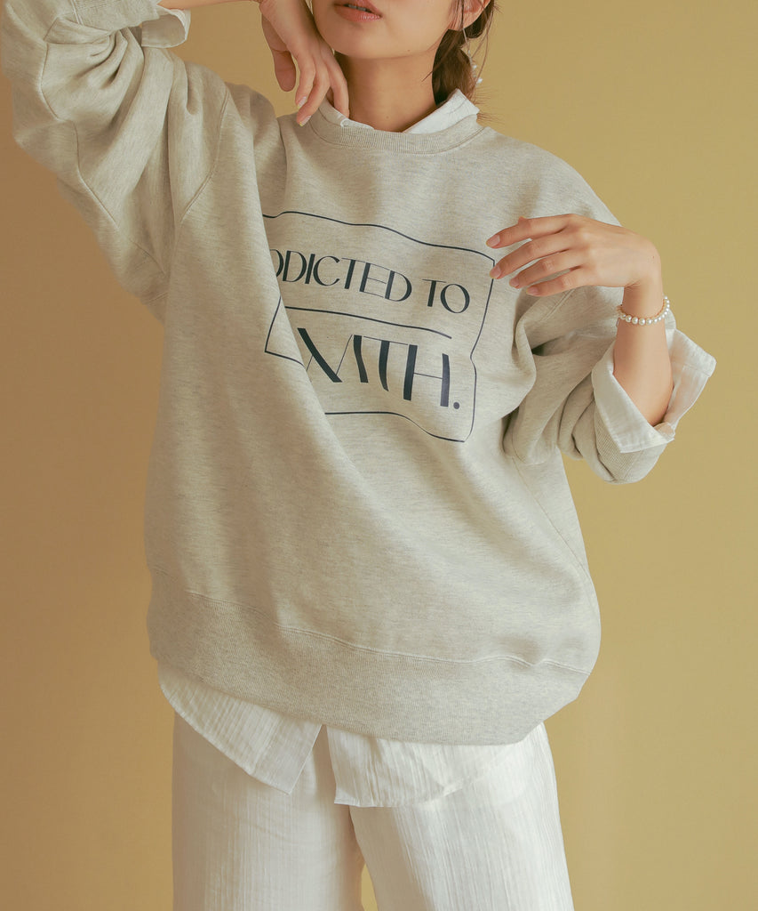 ビックロゴが目を引くスウェット。オーバーサイズでお尻が隠れる嬉しい着丈です。目の細かい素材を使用しているので、着膨れせずスウェット特有のごわっと感や着膨れしにくいのが特徴的です。また保温性の高い裏起毛を使用しており、春先まで長く着用いただけます。ユニセックスなのでメンズの方も着用いただけます。