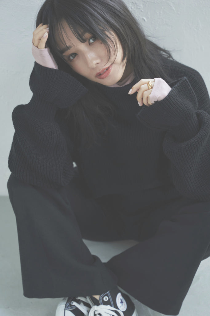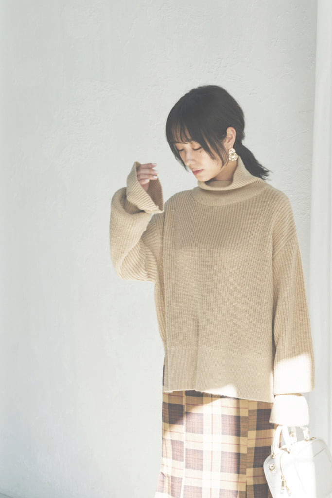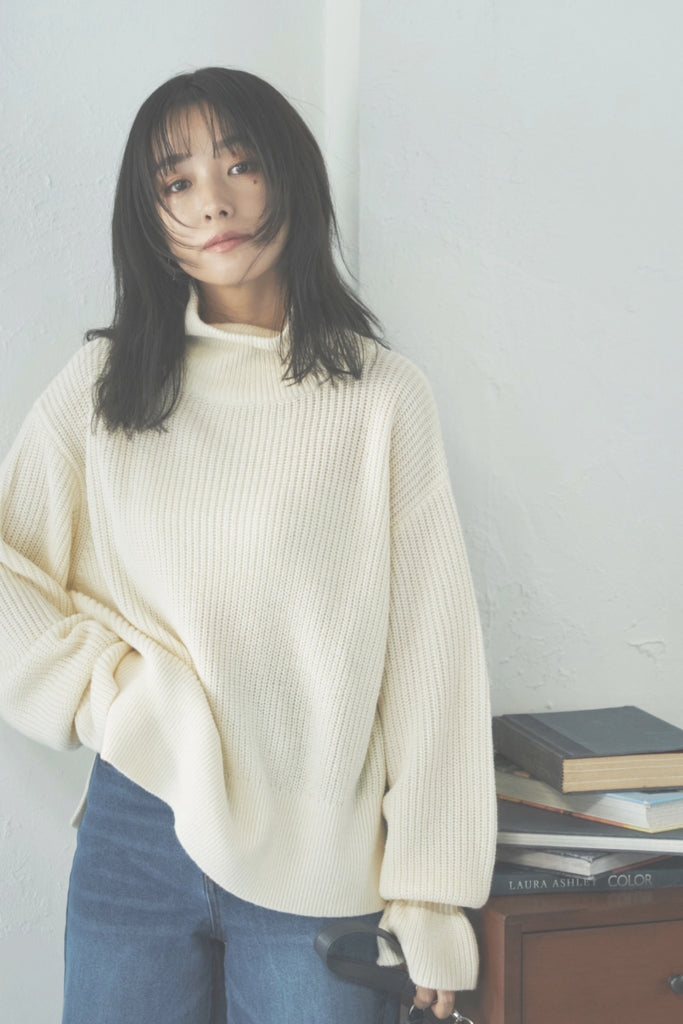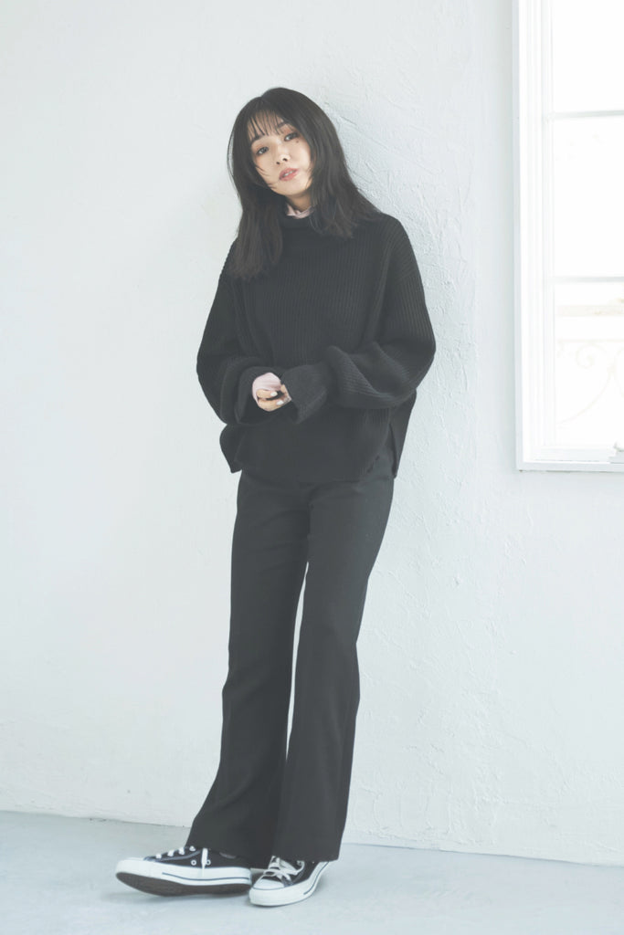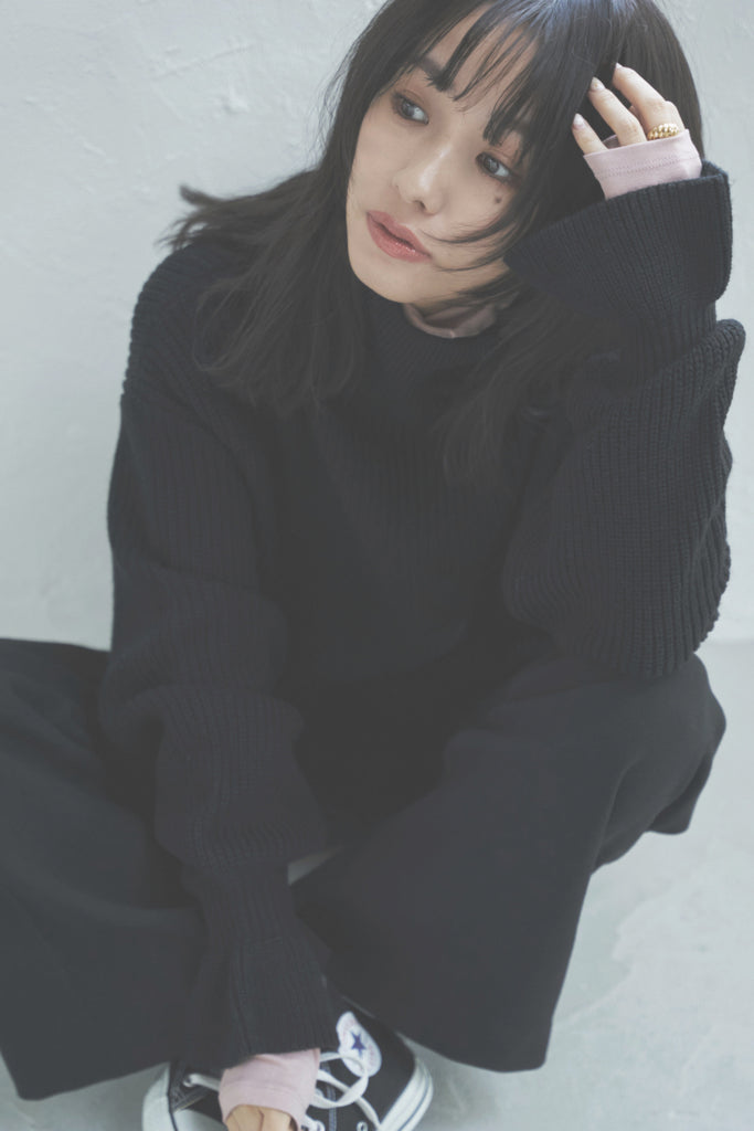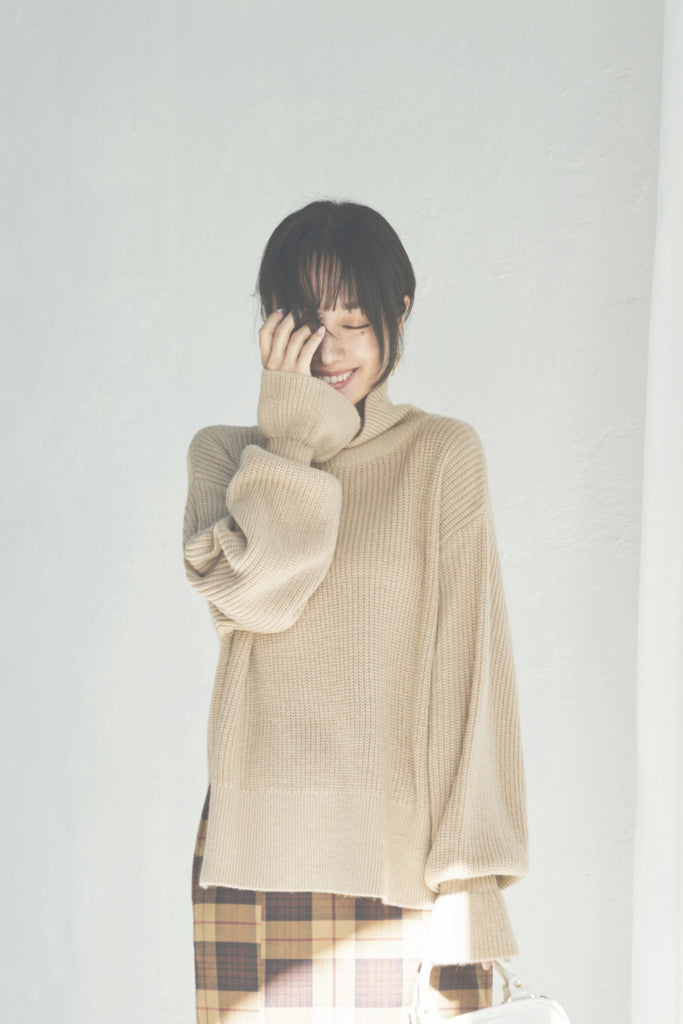 フレアスリーブが女性らしいニットです。袖にゴムが入っているのでブラウジングするとボリュームスリーブにもなります。少しゆったりとしたシルエットなので余裕のある印象に。3色共ベーシックカラーなのでカラーインナーをレイヤードしてチラ見せするコーデも◎