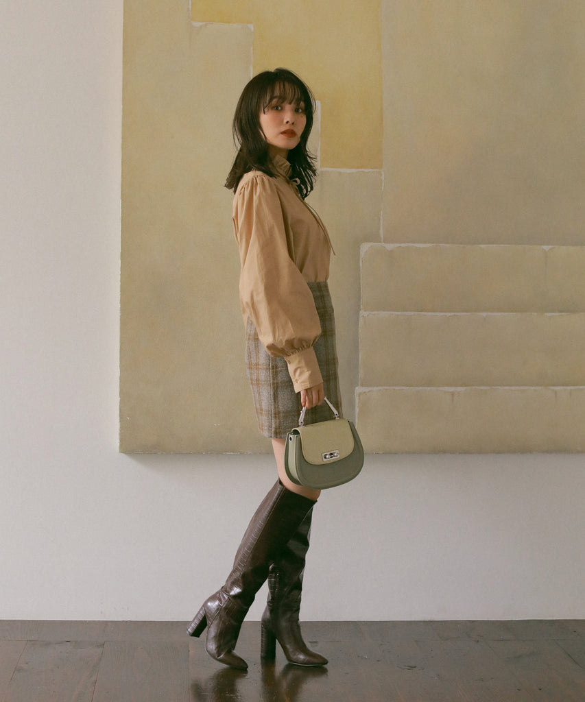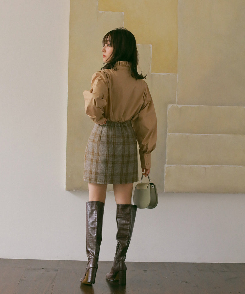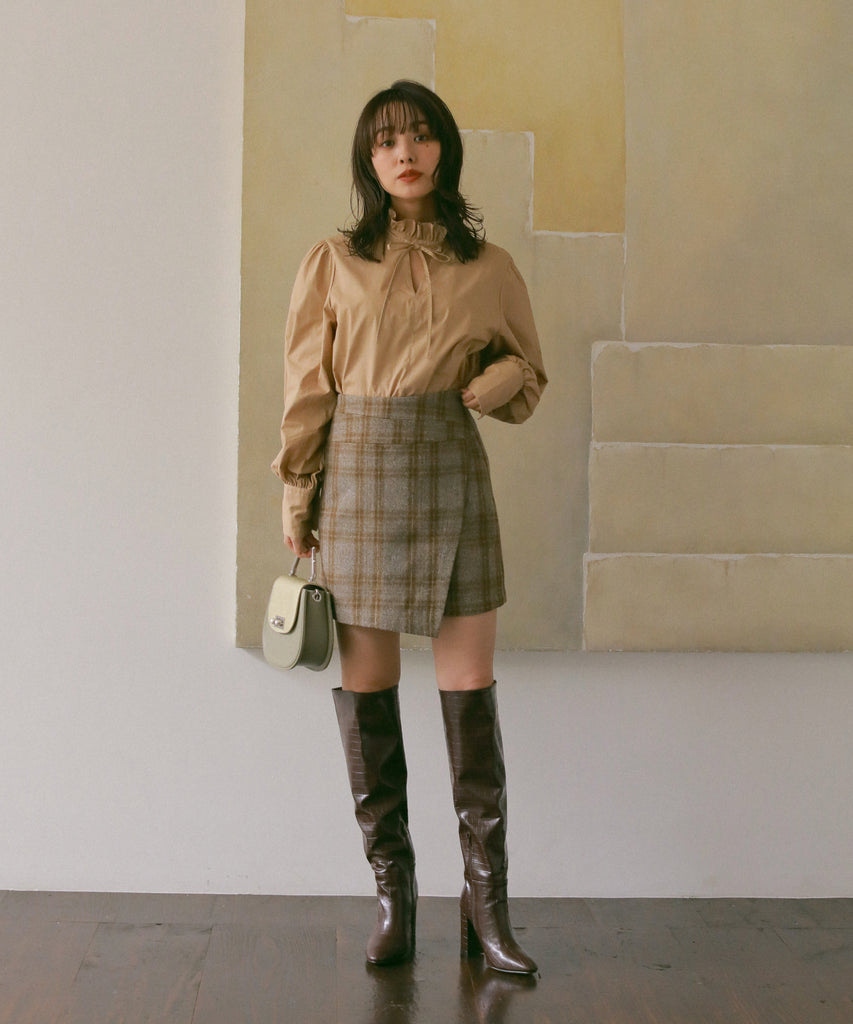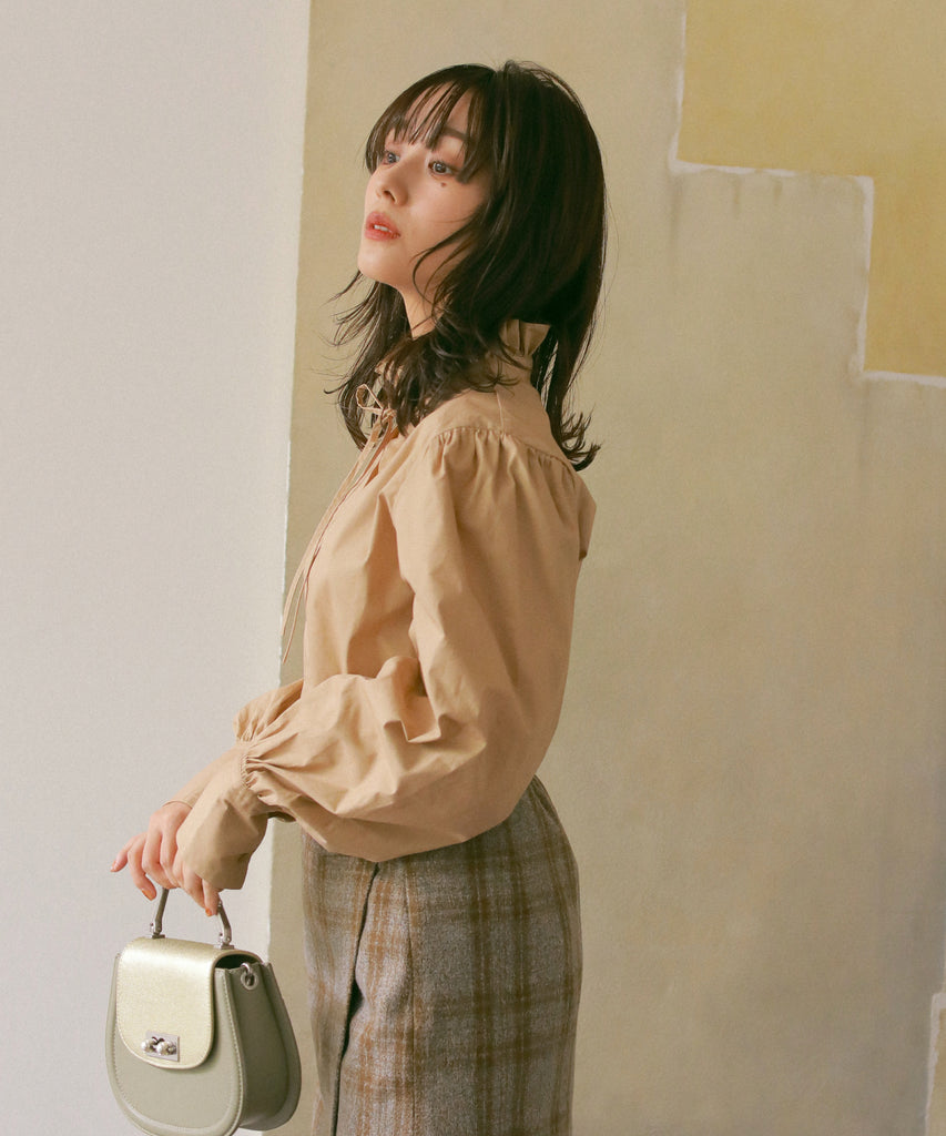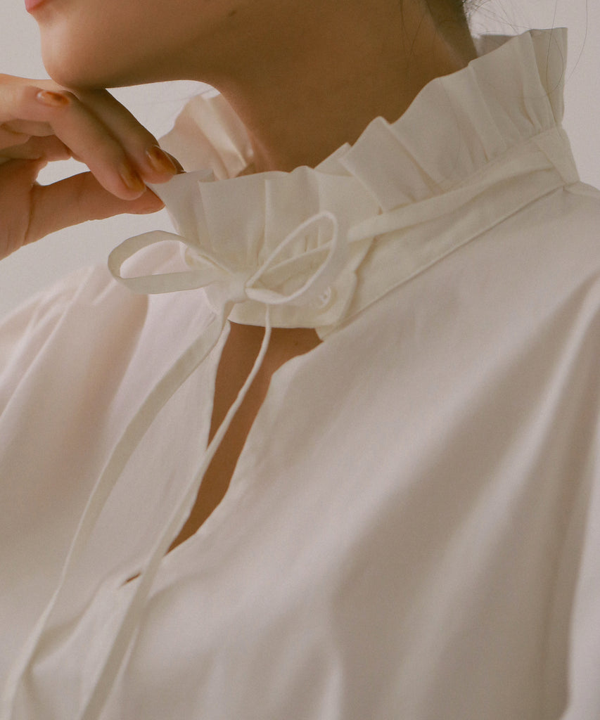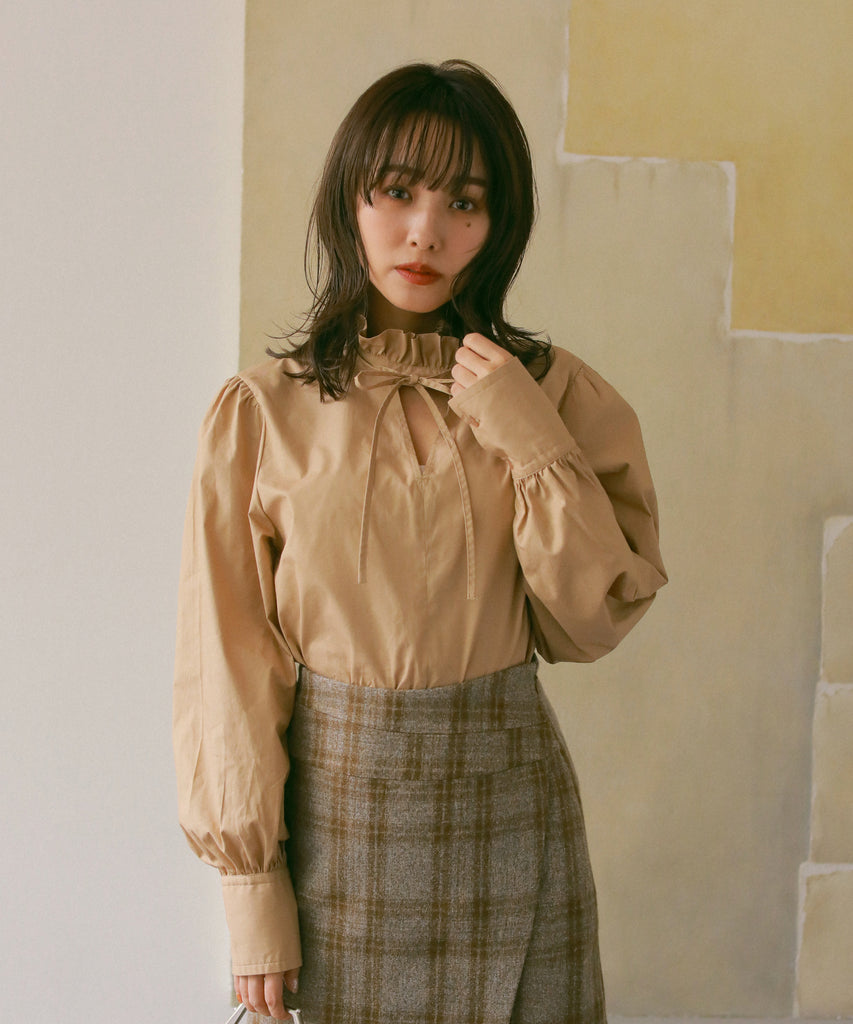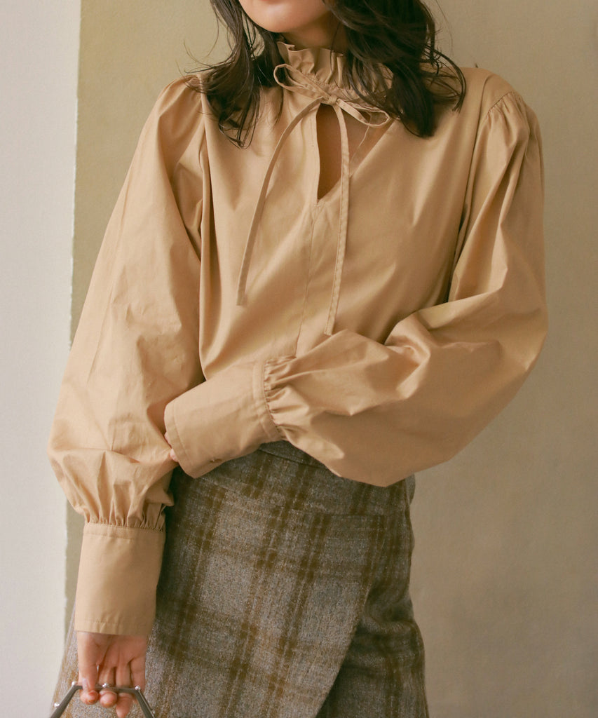 フリルネックブラウス