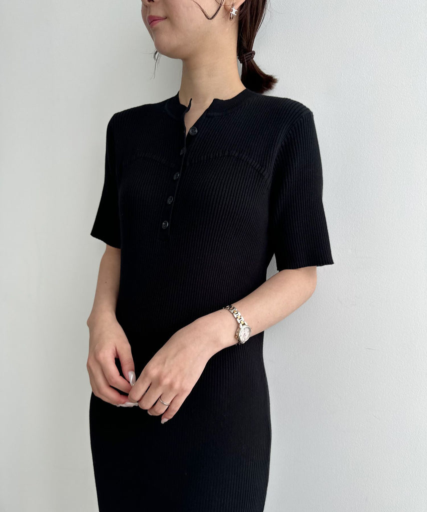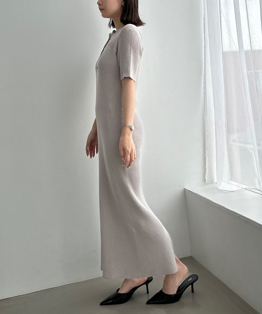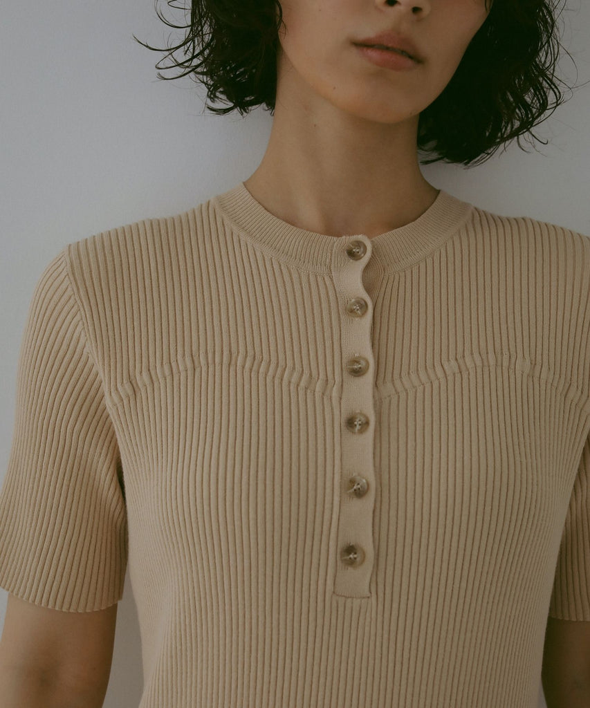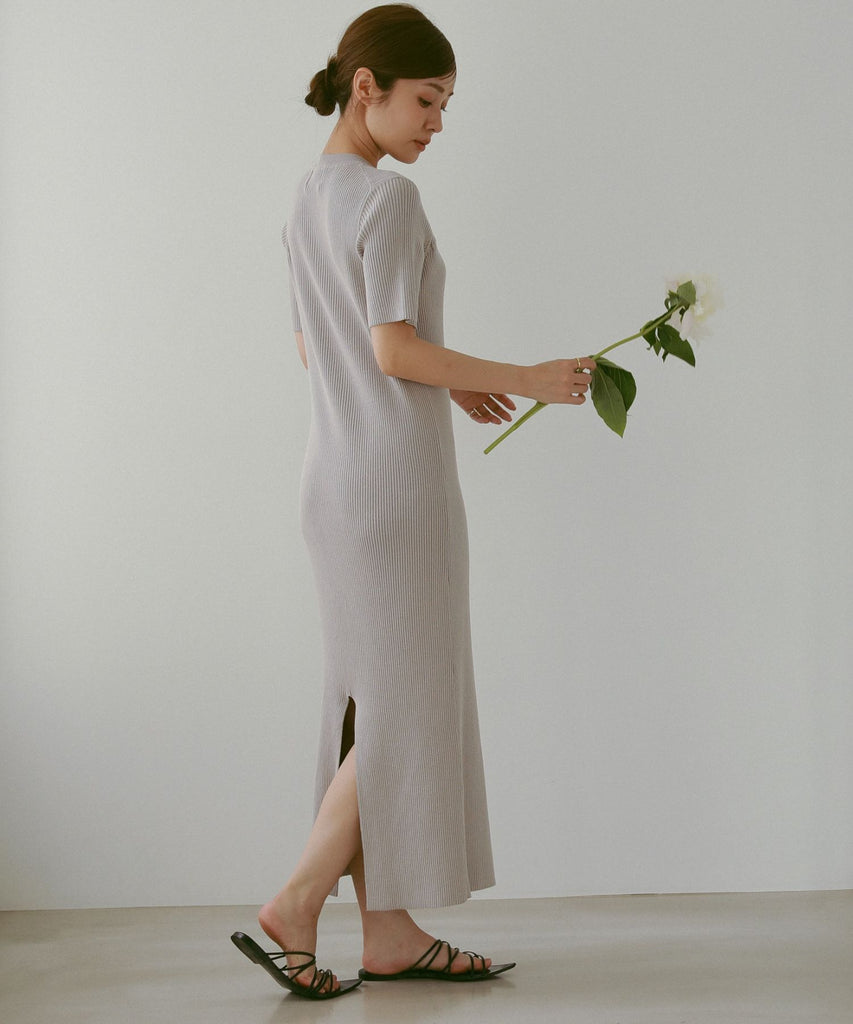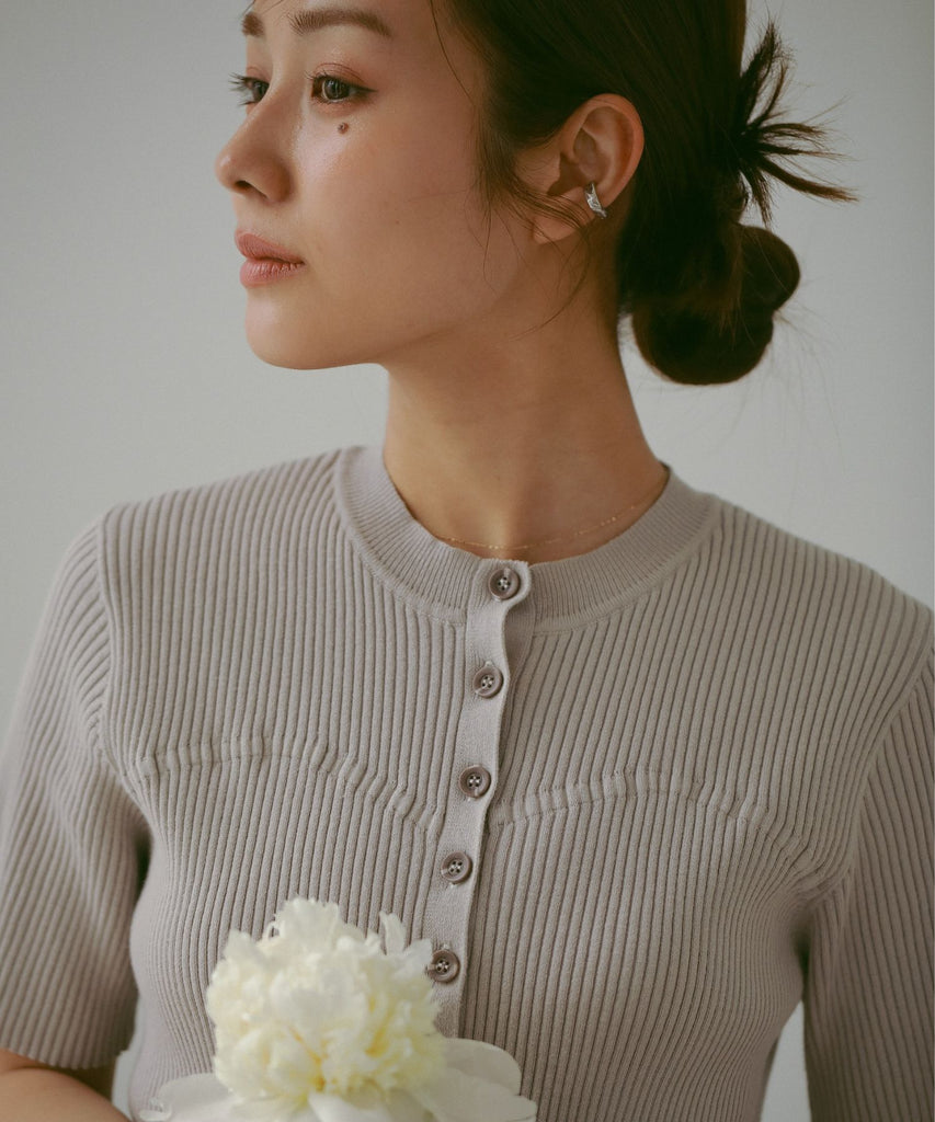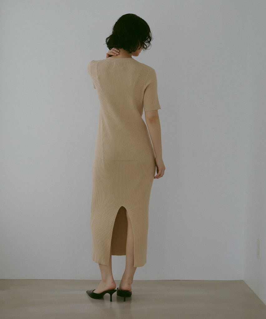 伸縮性に富んだリブデザインでカジュアルさもありながら、コンパクトでシャープなIラインシルエットで女性らしさを感じる一枚。