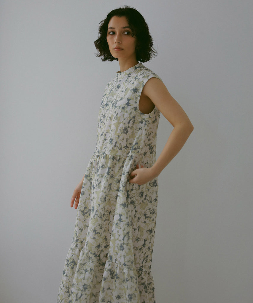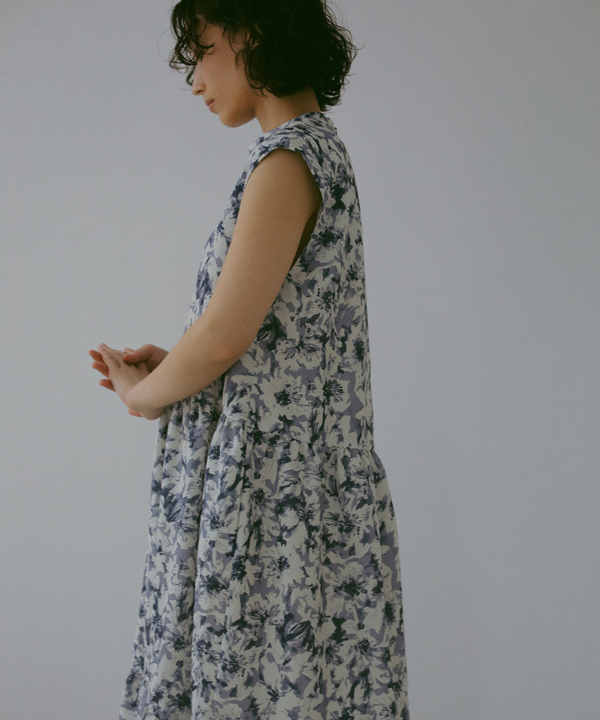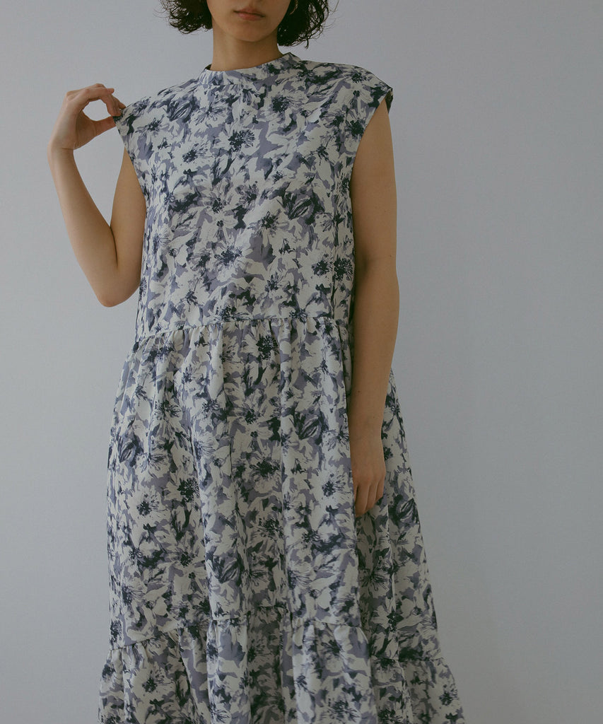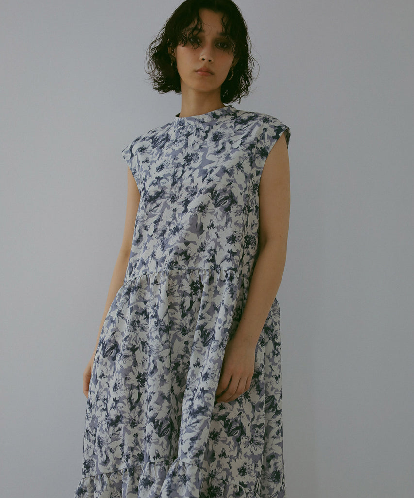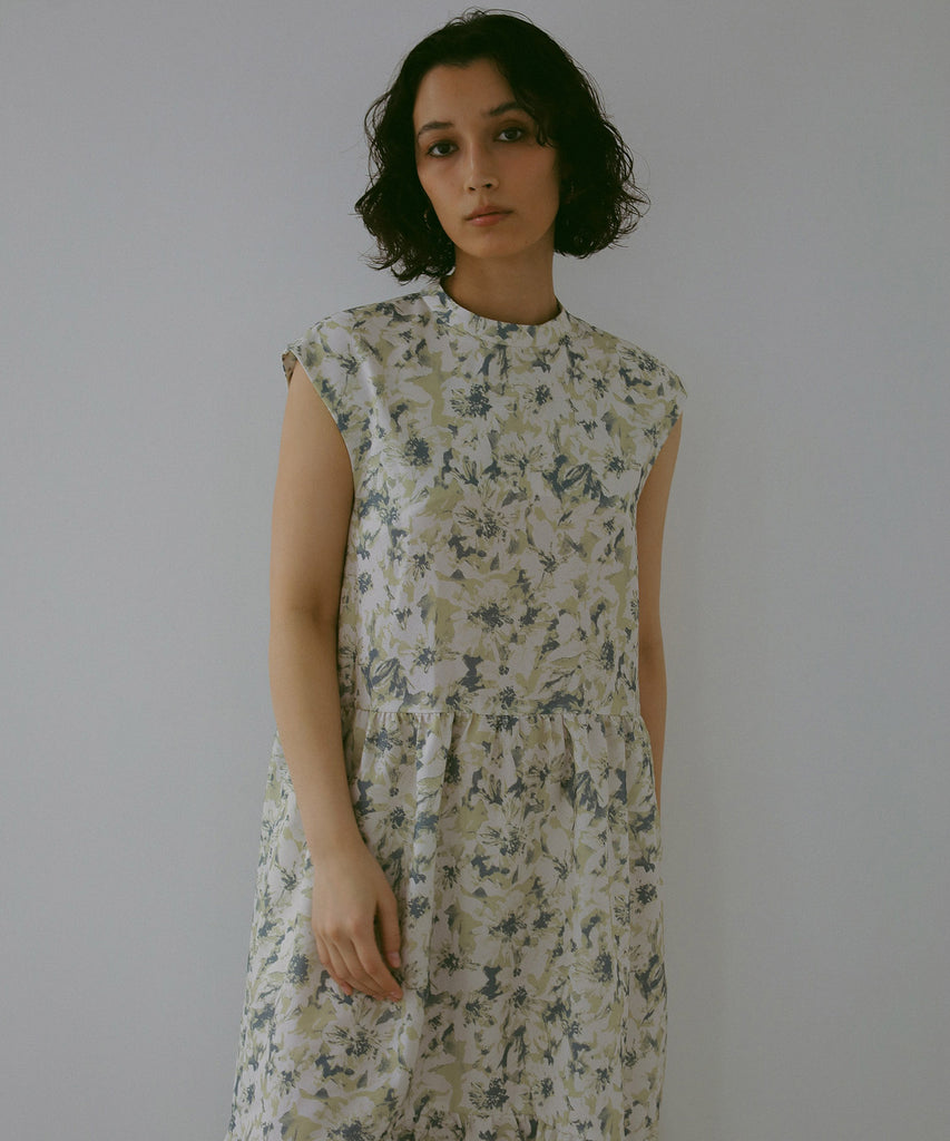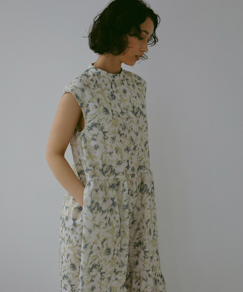 繊細なタッチのフラワープリントを全面に施したティアードワンピース。ニュアンスのあるカラーリングで上品な印象を纏える一枚。軽くてシワになりにくい素材感で手洗い可能なイージーケア。ふんわりとしたボリュームで、綺麗に体型をカバーしてくれるAラインシルエットが魅力です。フレンチスリーブにすることで気になる二の腕周りをスッキリと見せてくれます。 同素材でフラワープリントナロースカートのご用意もございます。