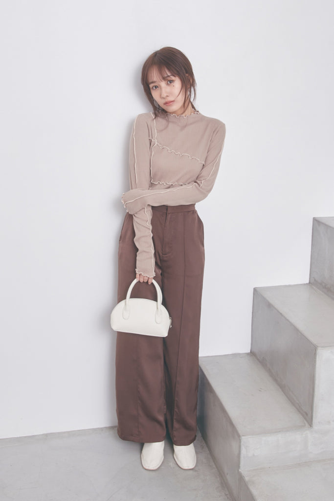 サテンの素材感がお洒落なワイドパンツです。