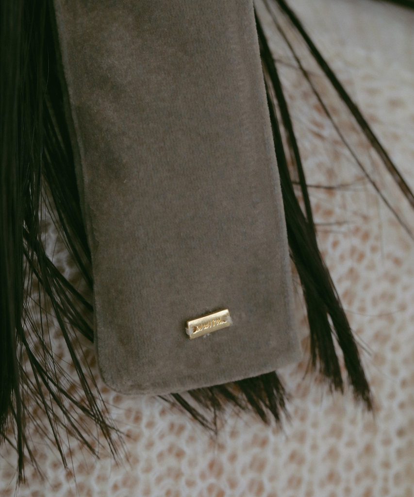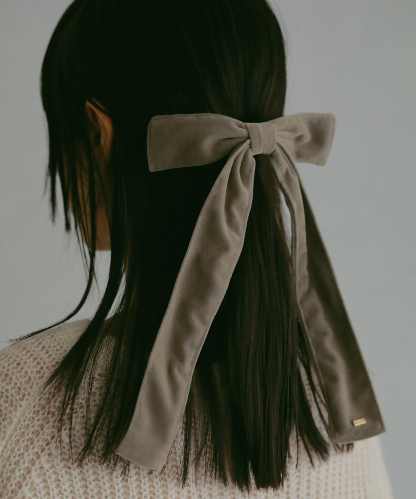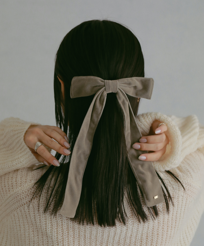 インパクトのある大きめリボンバレッタ。 キレイなベロア調の素材と落ち着いたカラーで大人でも気軽につけられるデザインです。 オケージョンのシーンはもちろん、デニム等のカジュアルスタイルでもお楽しみいただけます。 小さなブランドプレートがさらにアクセントに。